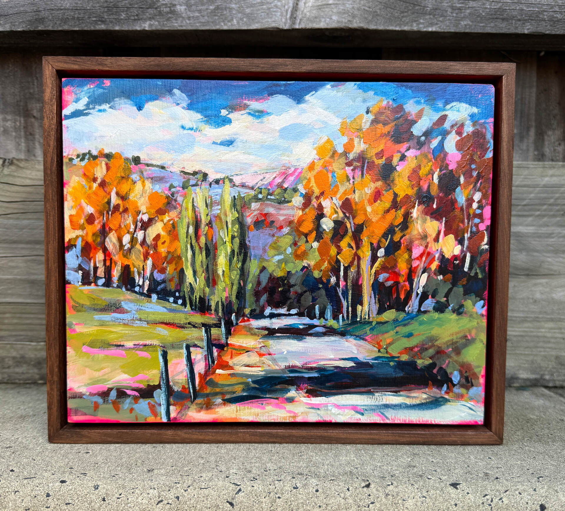 Autumn Road acrylic on board painting by artist Cathy Usatoff