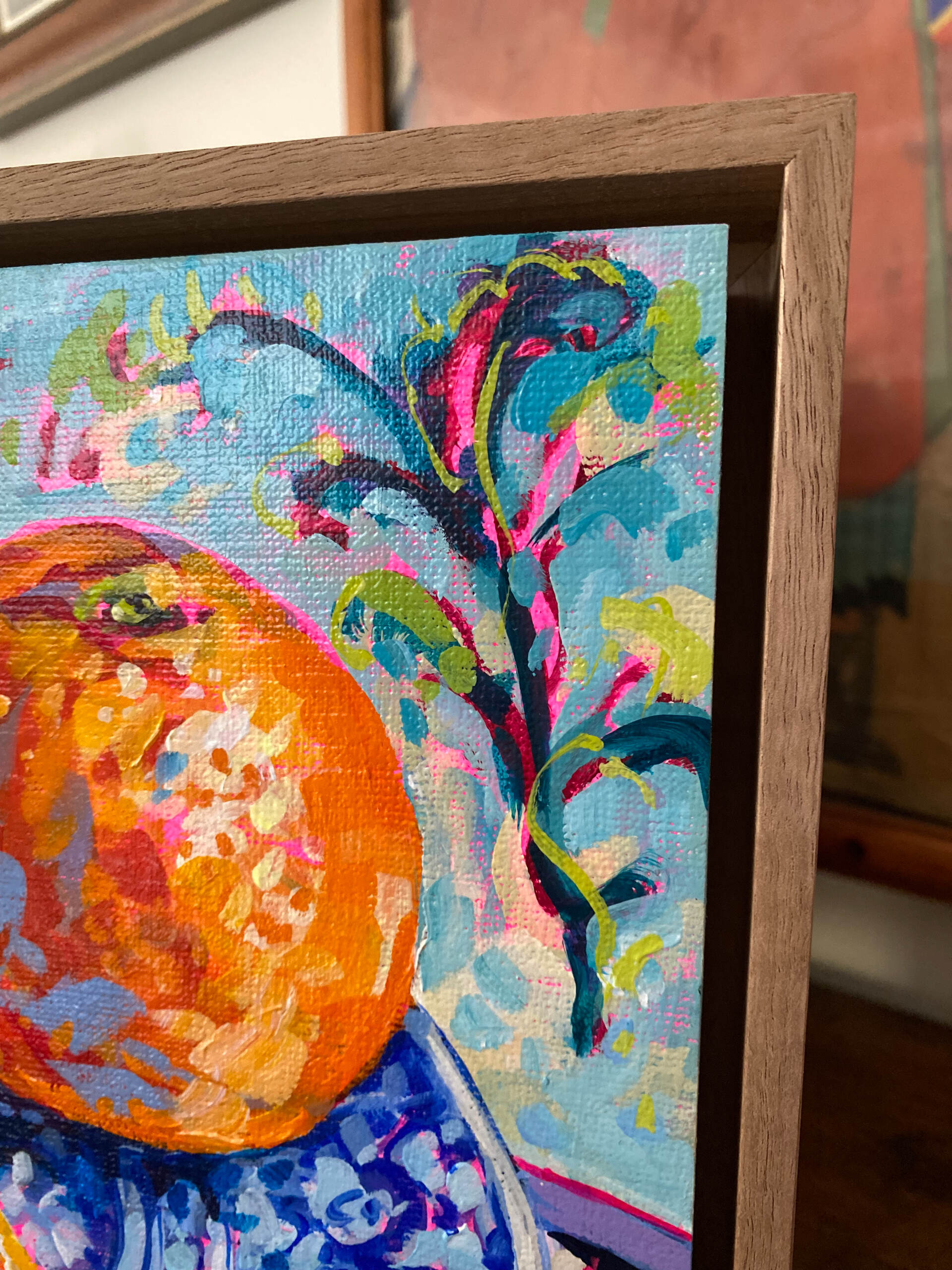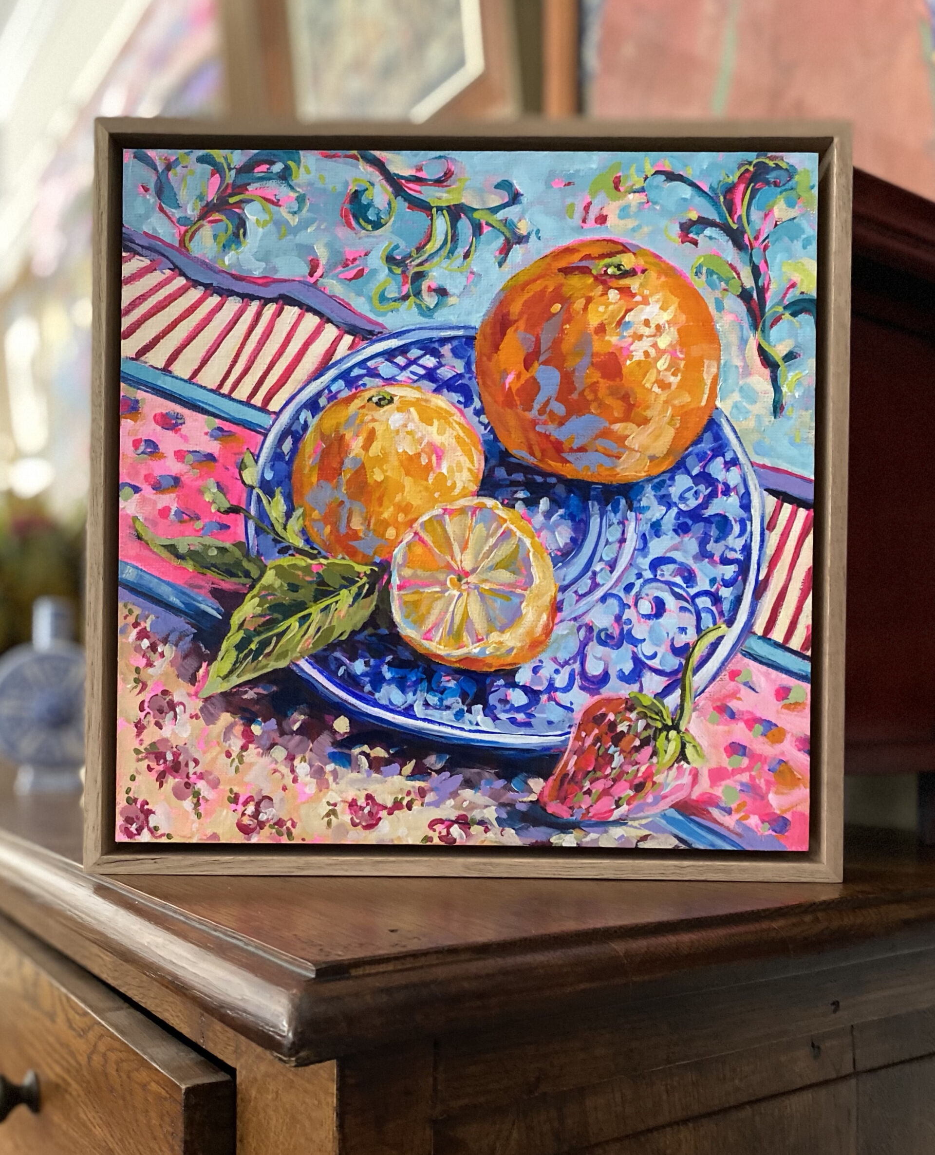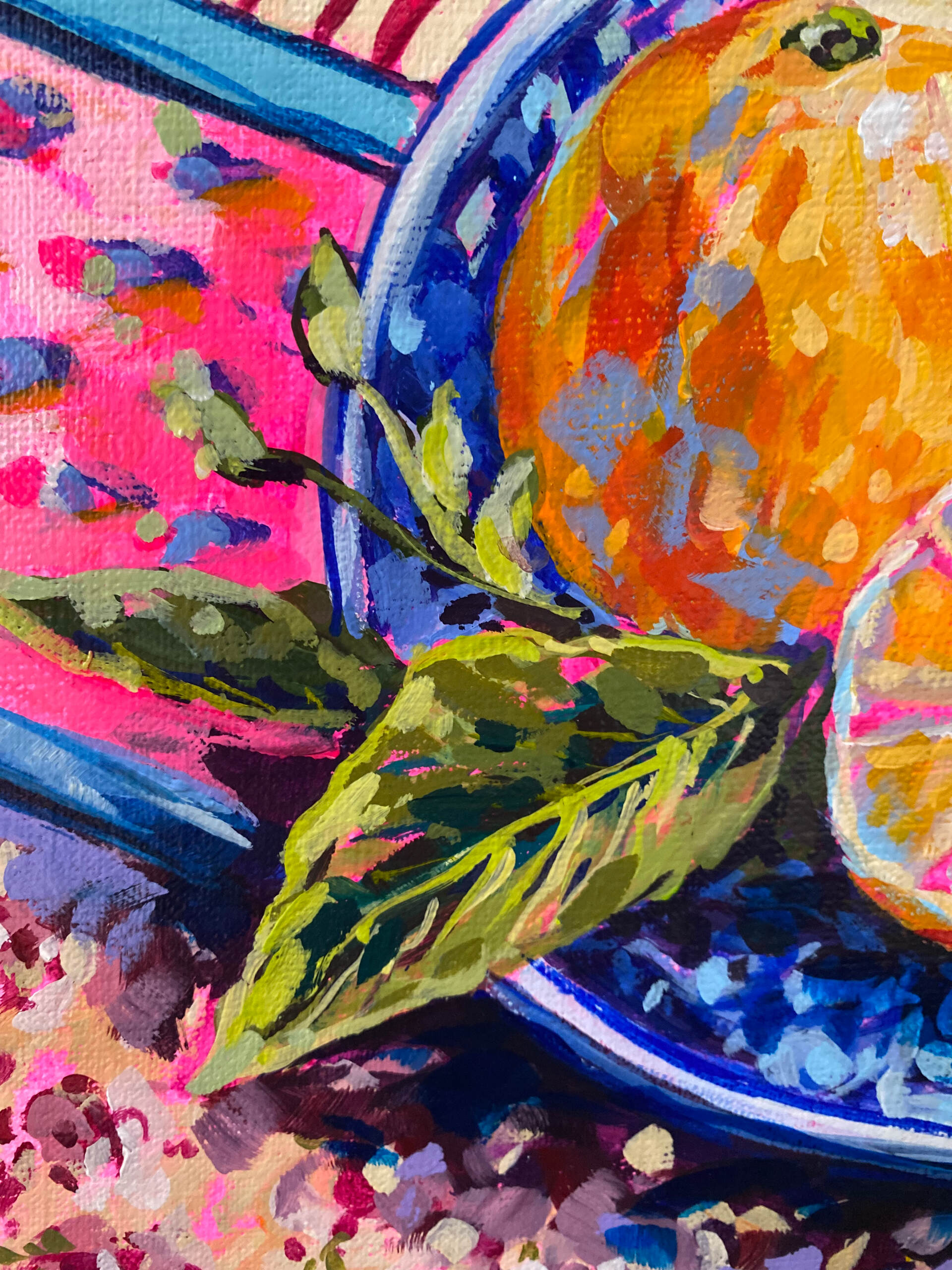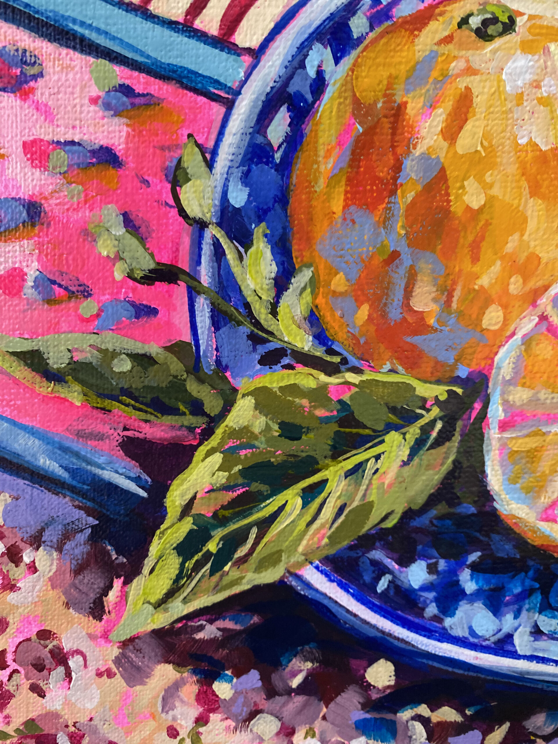 Citrus and Blue Acrylic on linen canvas painting by artist Cathy Usatoff