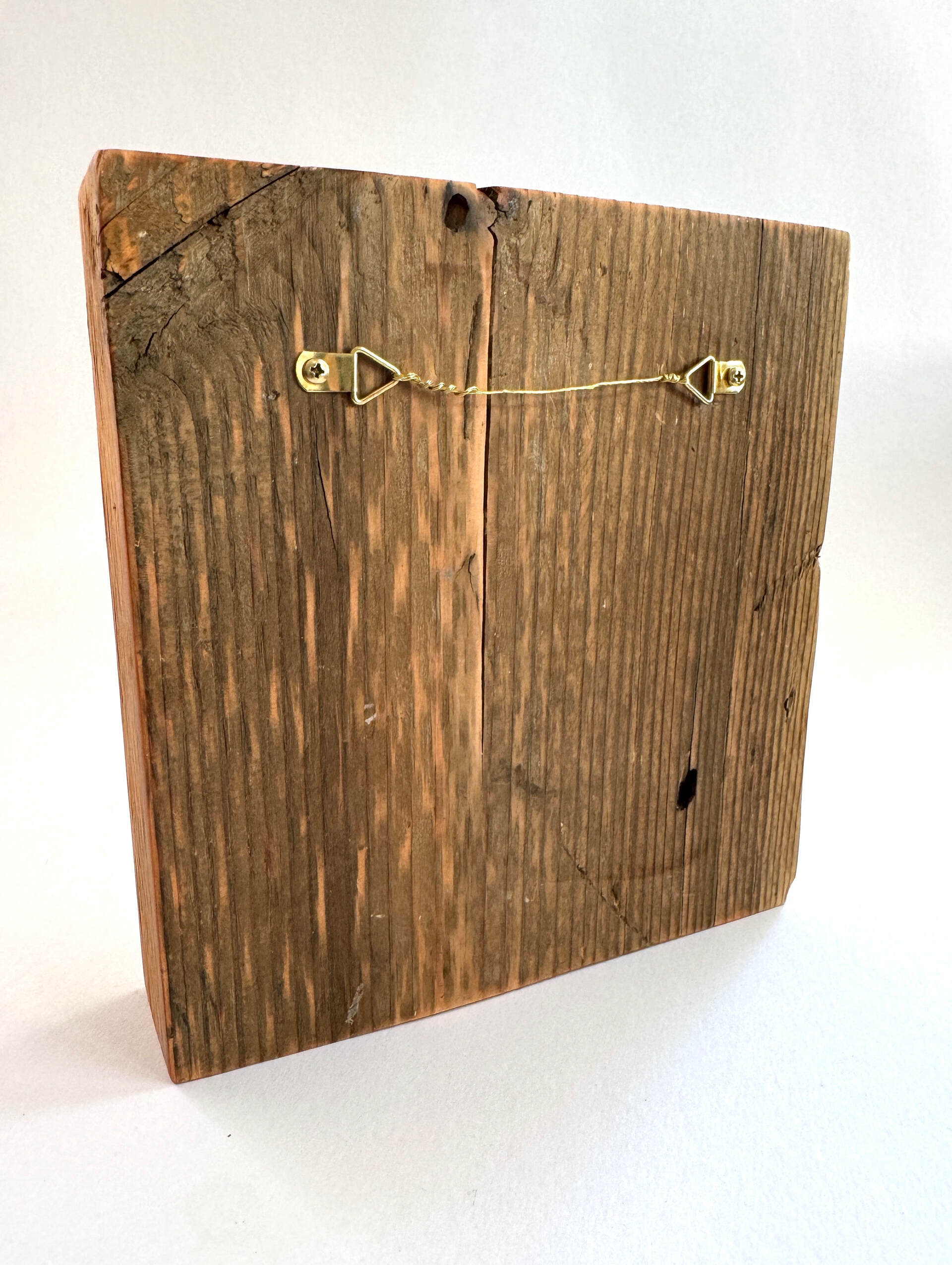 A mini painting on recycled/reclaimed wood block.