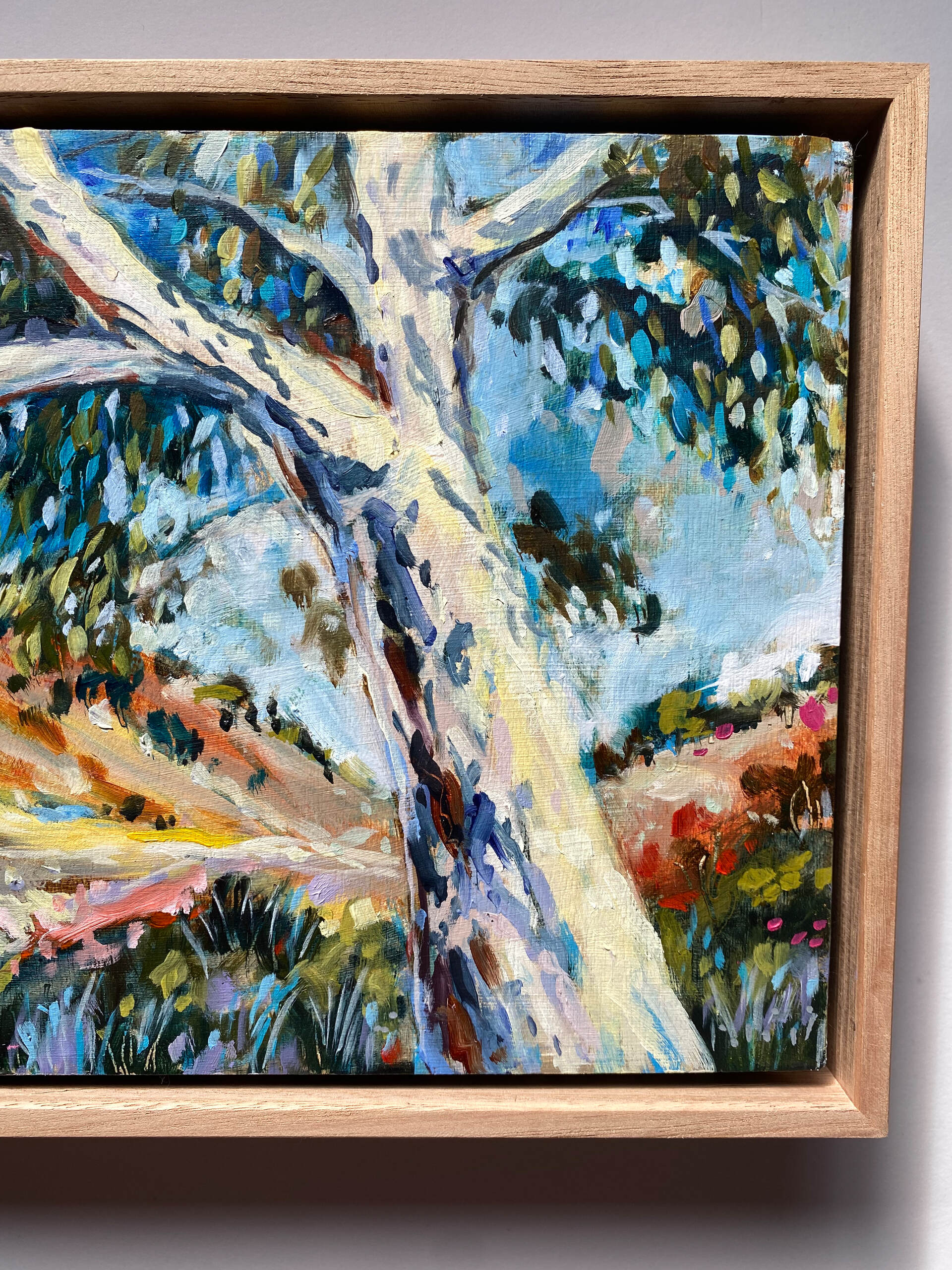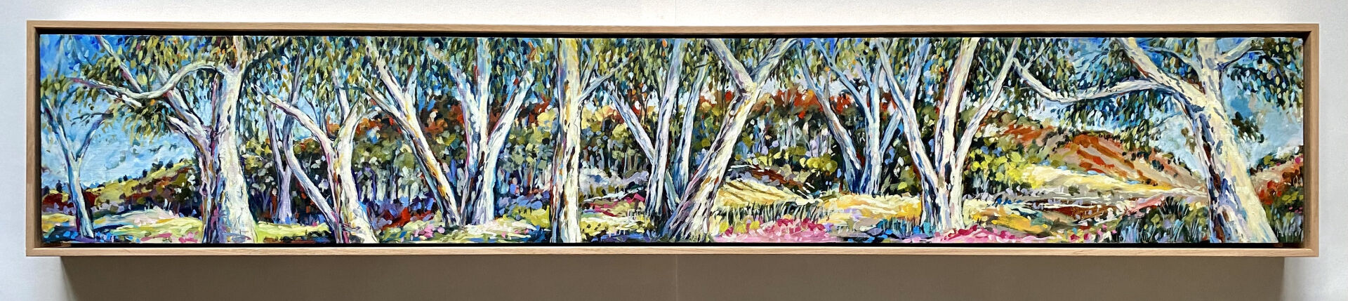 This painting was based on a painting trip to Alice Springs, Northern Territory. We camped on the ancient Finke River riverbed which was dotted with beautiful river gums along its banks. It was very special to experience this incredible landscape.