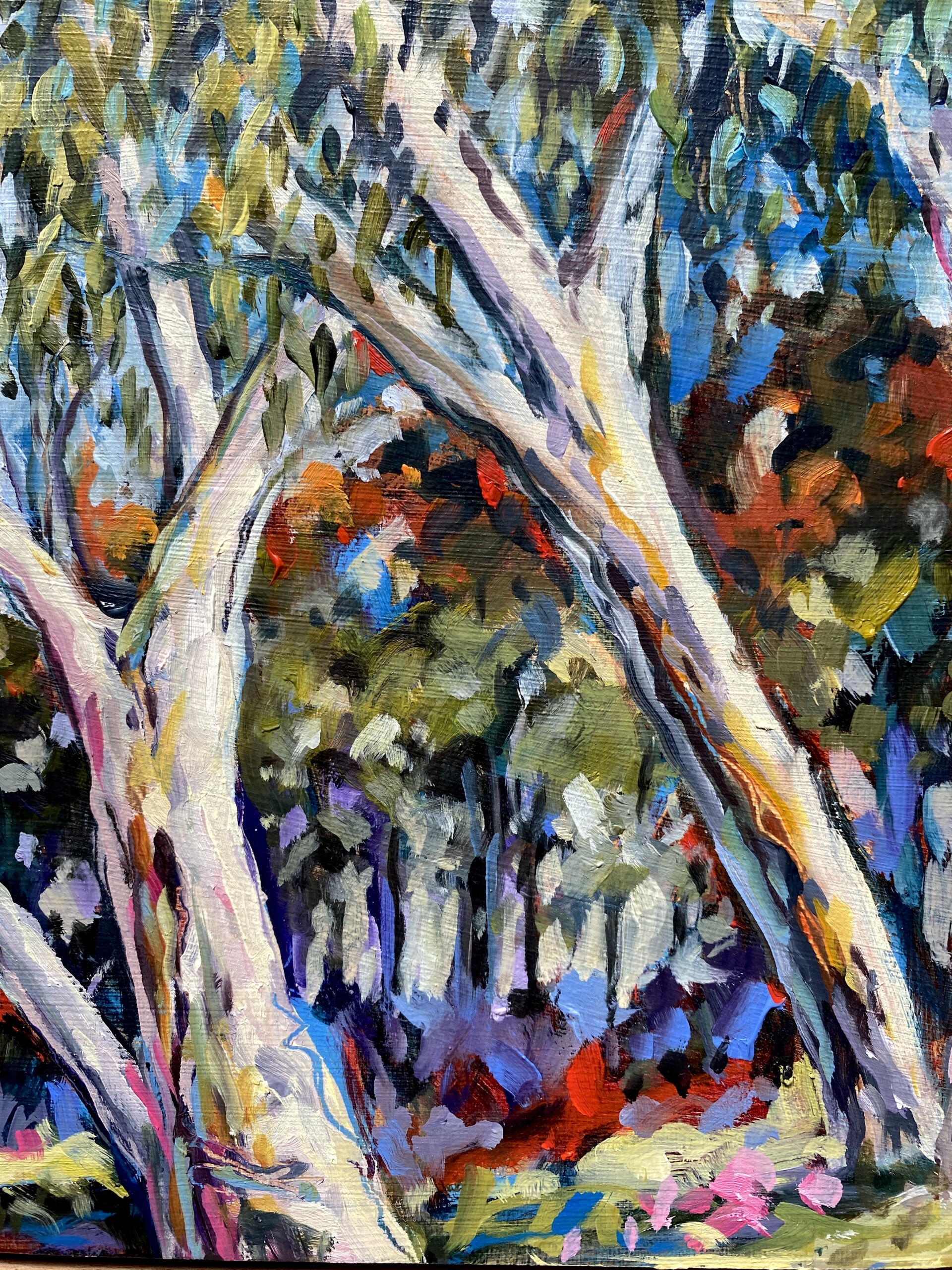 Finke River Gums - oil on board painting by artist Cathy Usatoff