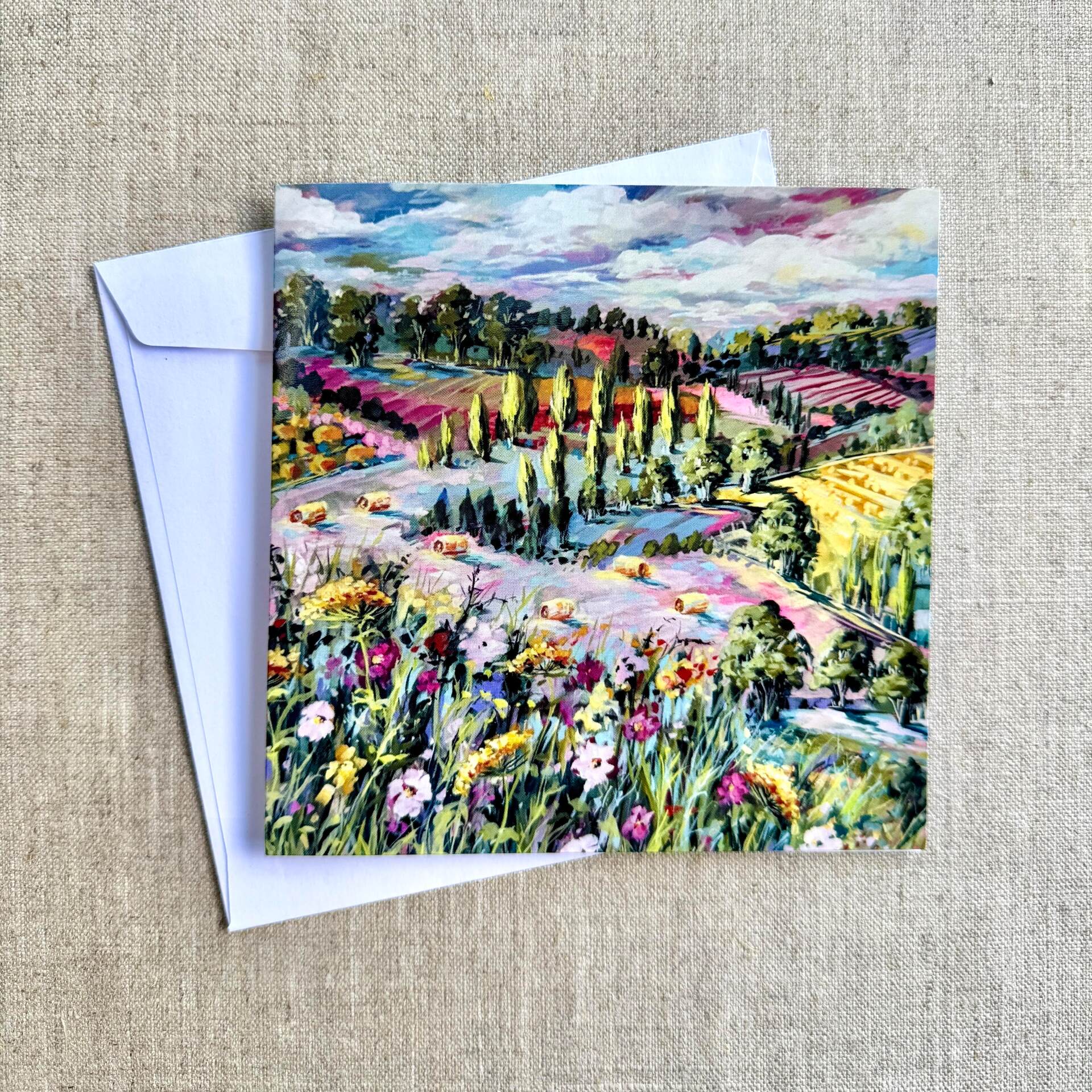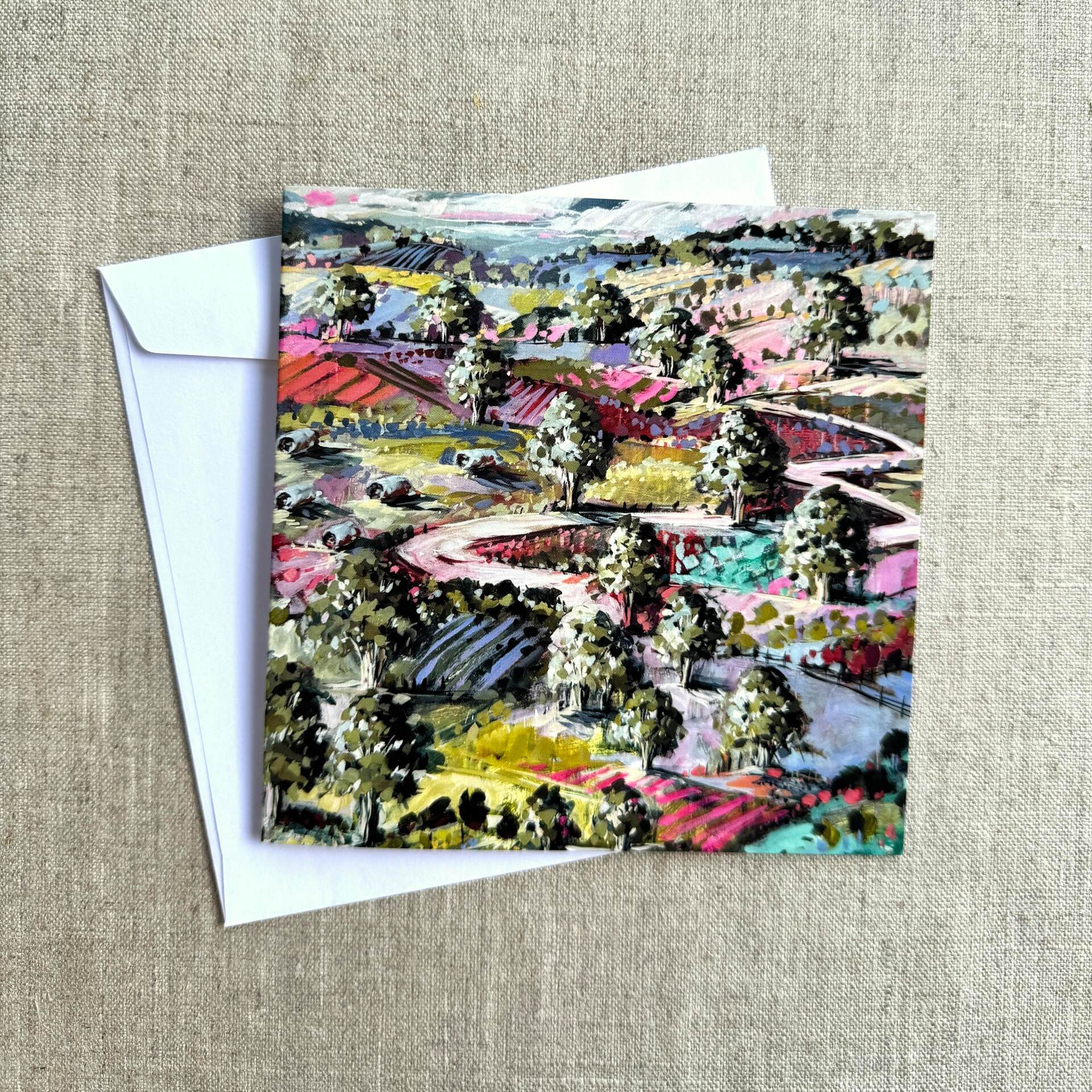 Assorted pack of 5 greeting cards, includes 5 white envelopes.