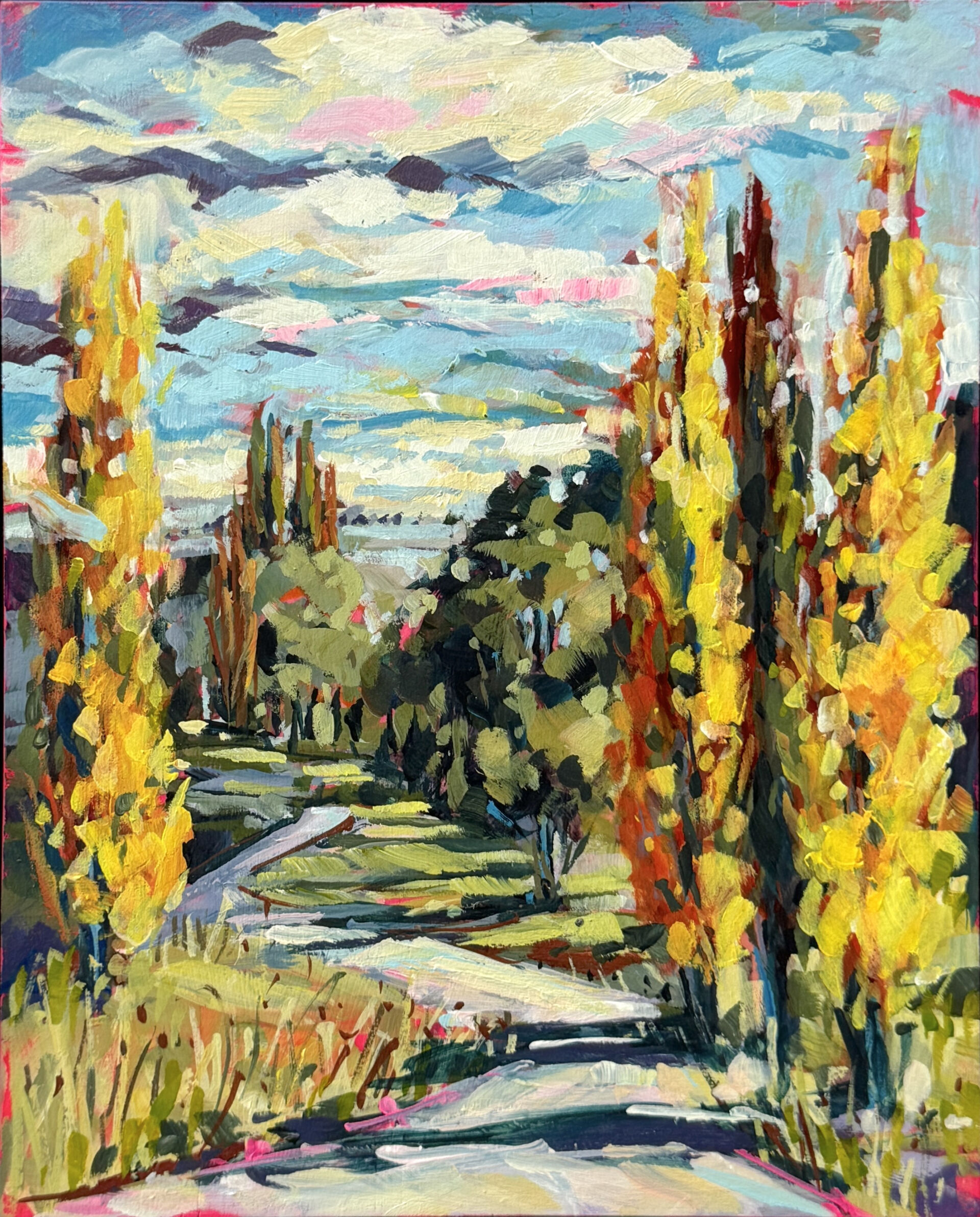 Golden Avenue - acrylic on board painting by artist Cathy Usatoff
