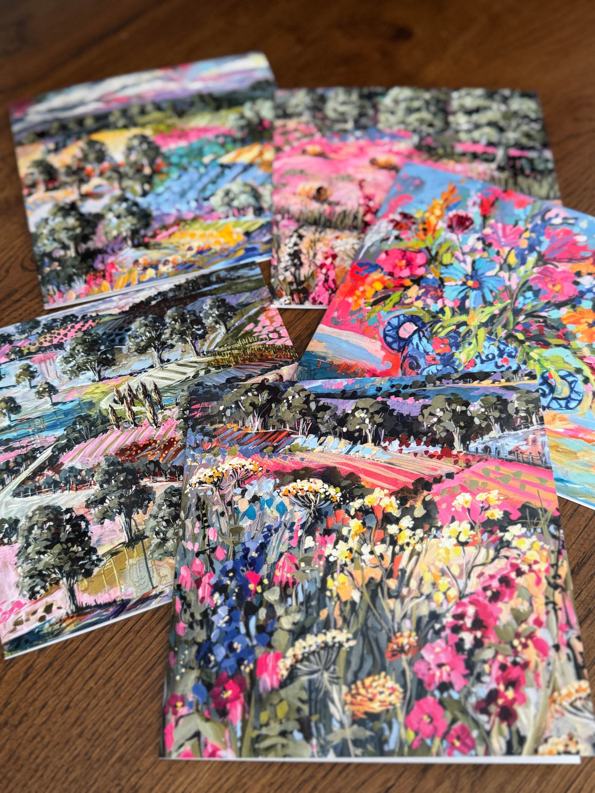 Assorted pack of 5 greeting cards and includes 5 white envelopes.