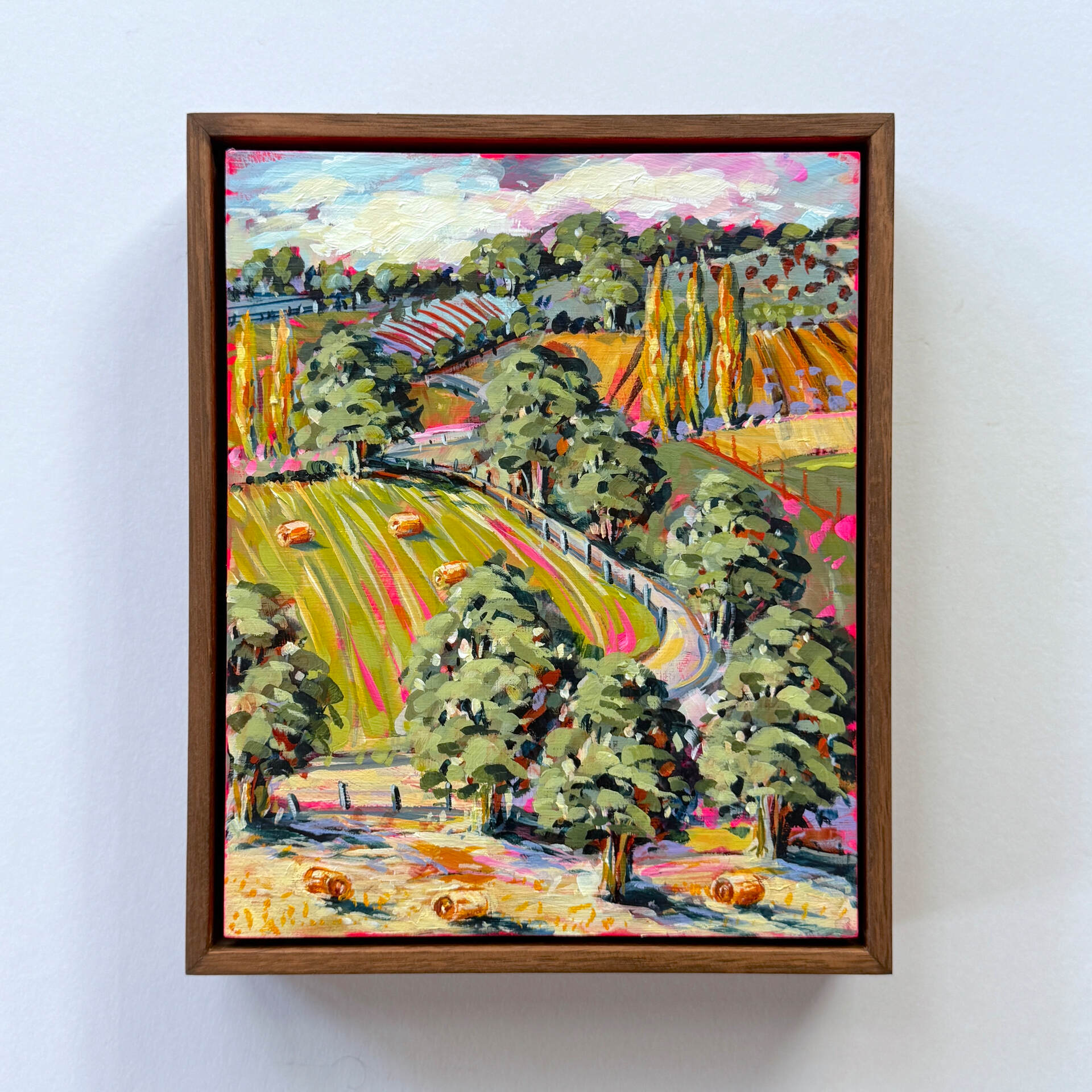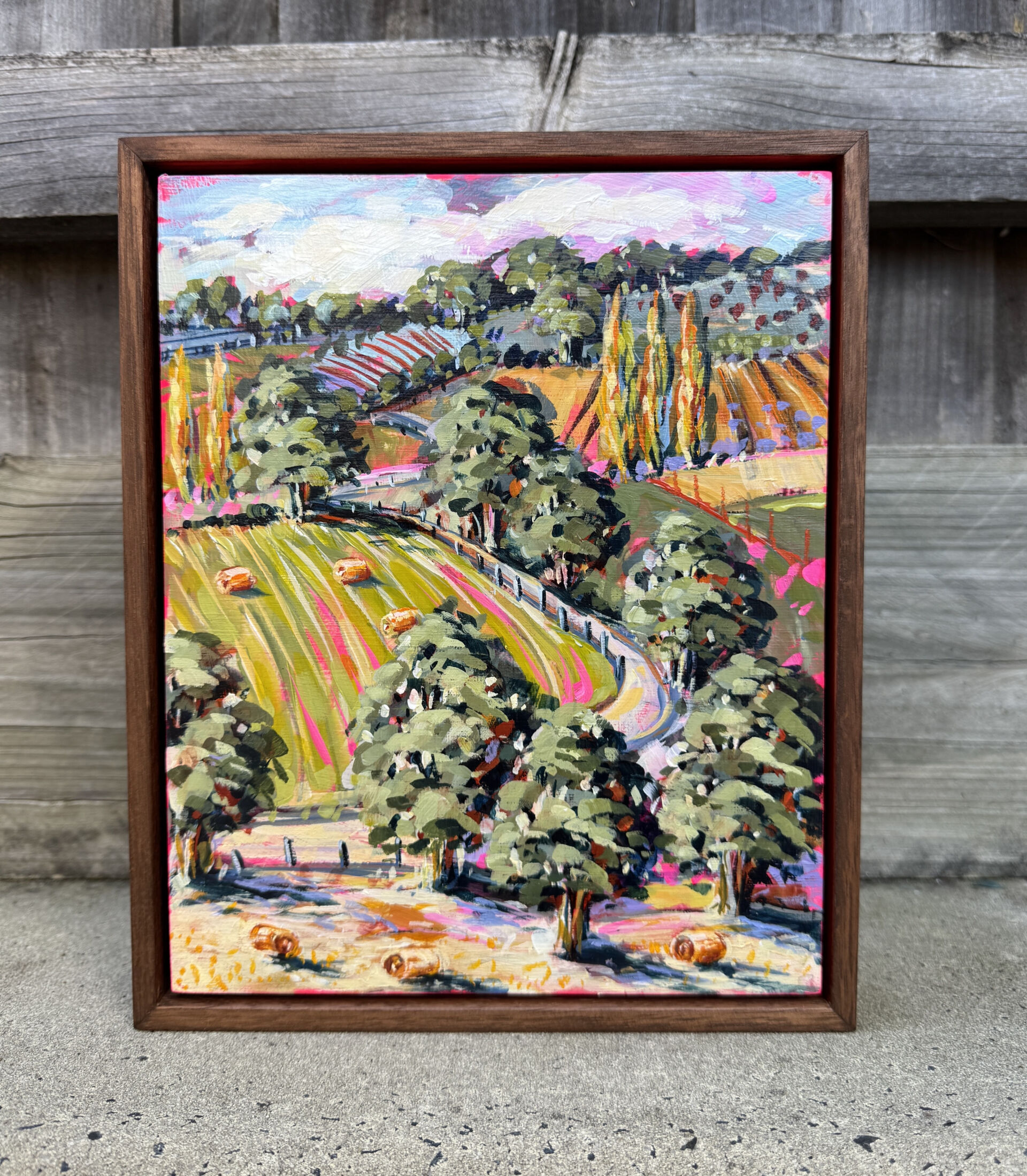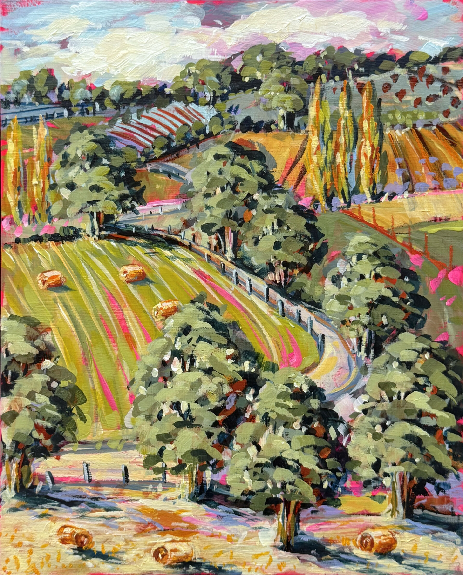 Hay Bale Hillside - acrylic on board painting by artist Cathy Usatoff