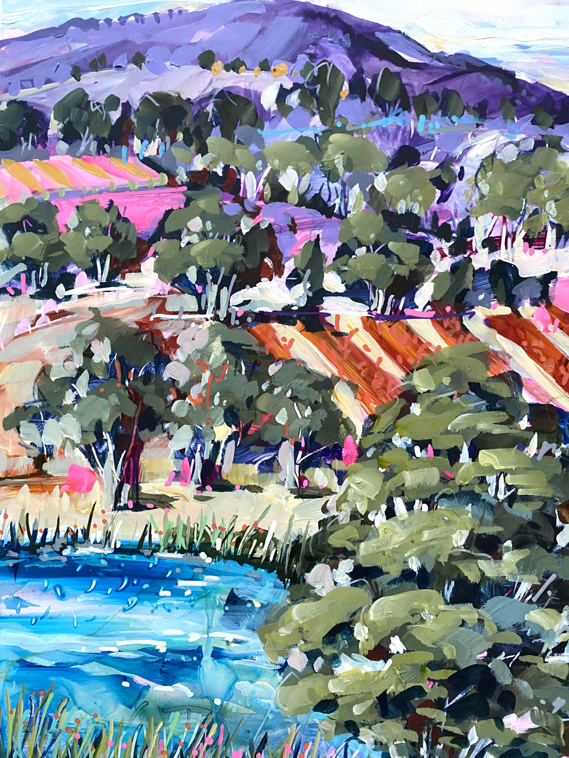 Inspired by the bountiful aspects of rural life and scenic hills and wineries on the Mornington Peninsula, this series of works invite the viewer to appreciate the vibrant palette of nature’s abundance and celebrates the ever changing beauty of Red Hill’s vistas and inspiring views.
