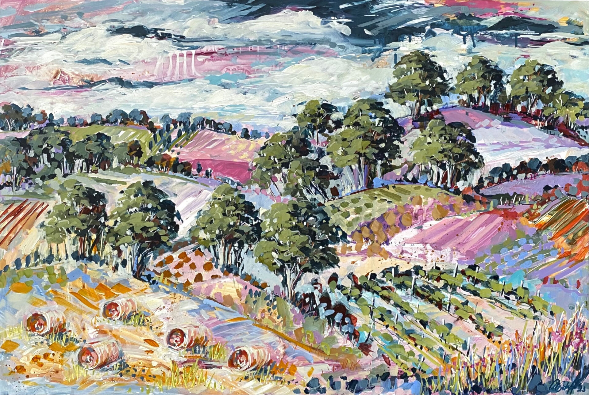Inspired by the bountiful aspects of rural life and scenic hills and wineries on the Mornington Peninsula, this series of works invite the viewer to appreciate the vibrant palette of nature’s abundance and celebrates the ever changing beauty of Red Hill’s vistas and inspiring views.