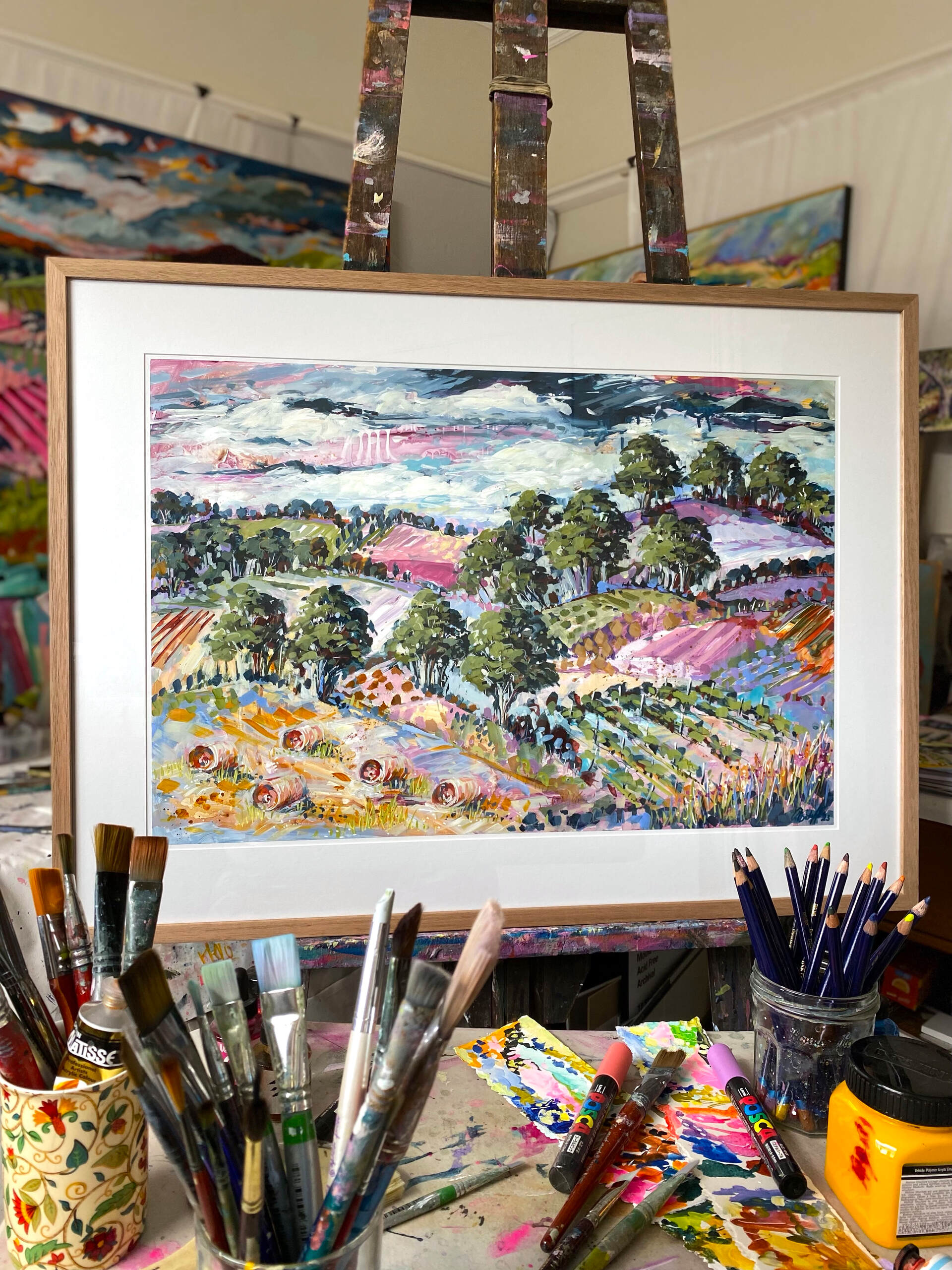 Inspired by the bountiful aspects of rural life and scenic hills and wineries on the Mornington Peninsula, this series of works invite the viewer to appreciate the vibrant palette of nature’s abundance and celebrates the ever changing beauty of Red Hill’s vistas and inspiring views.