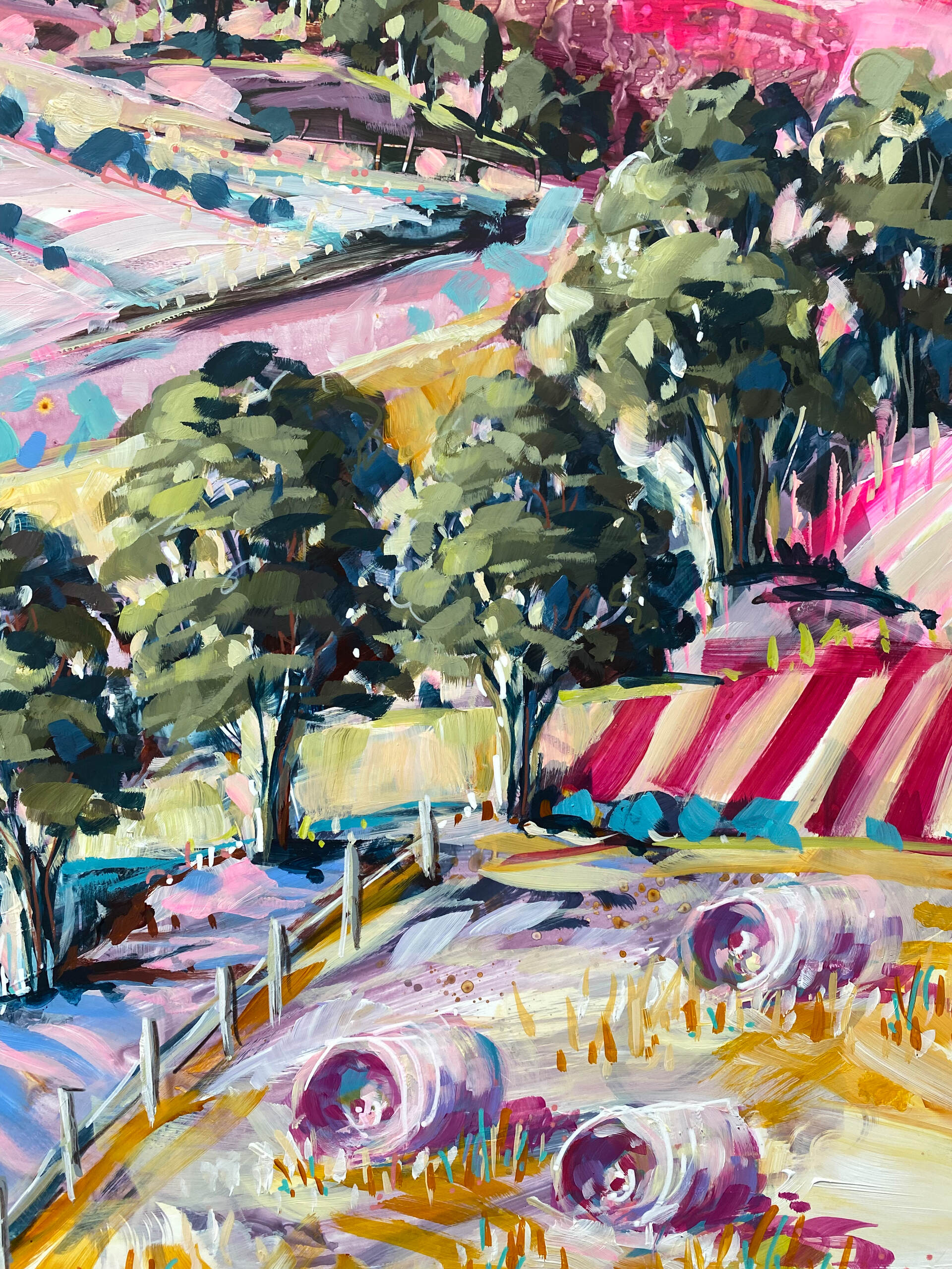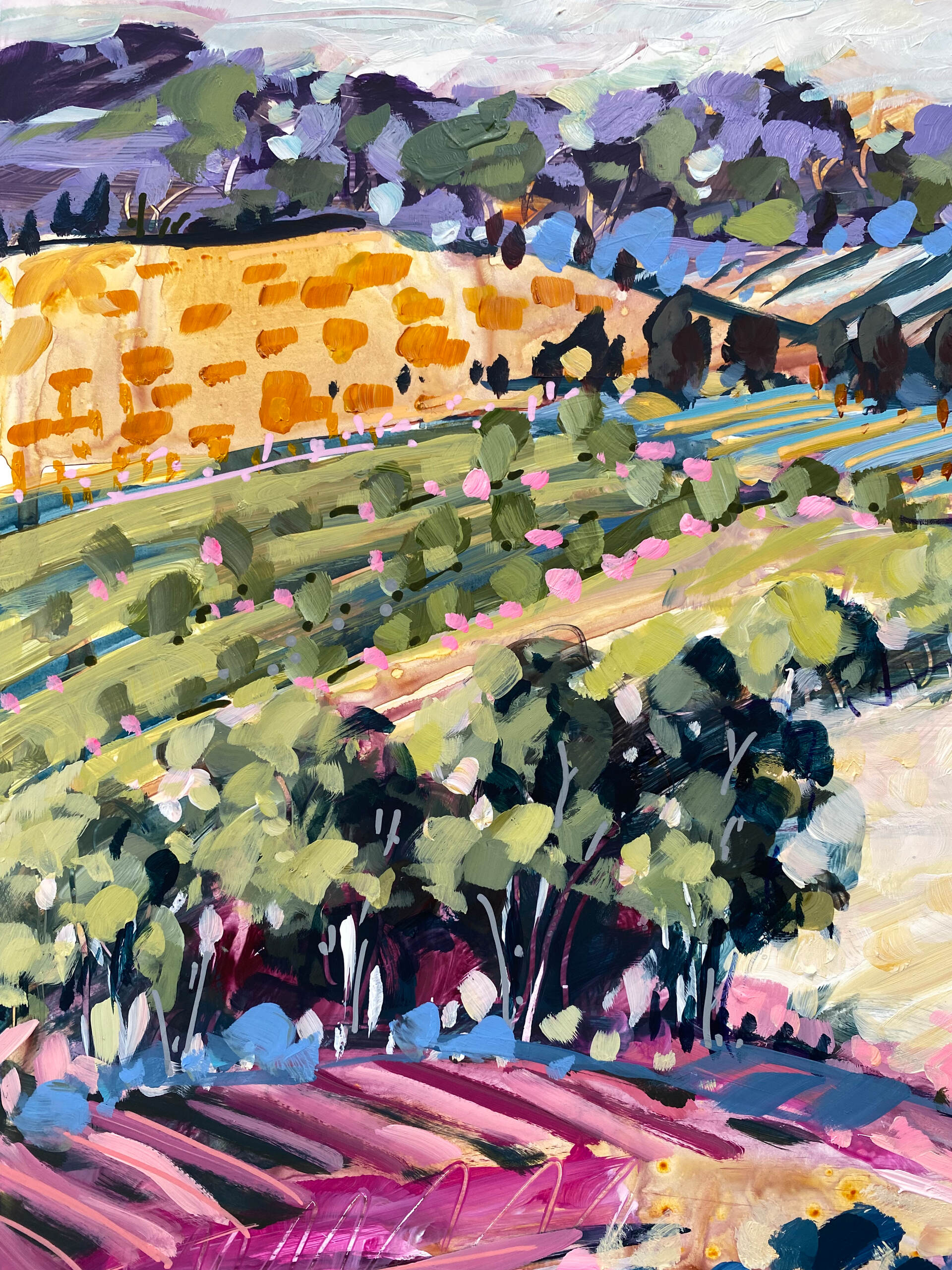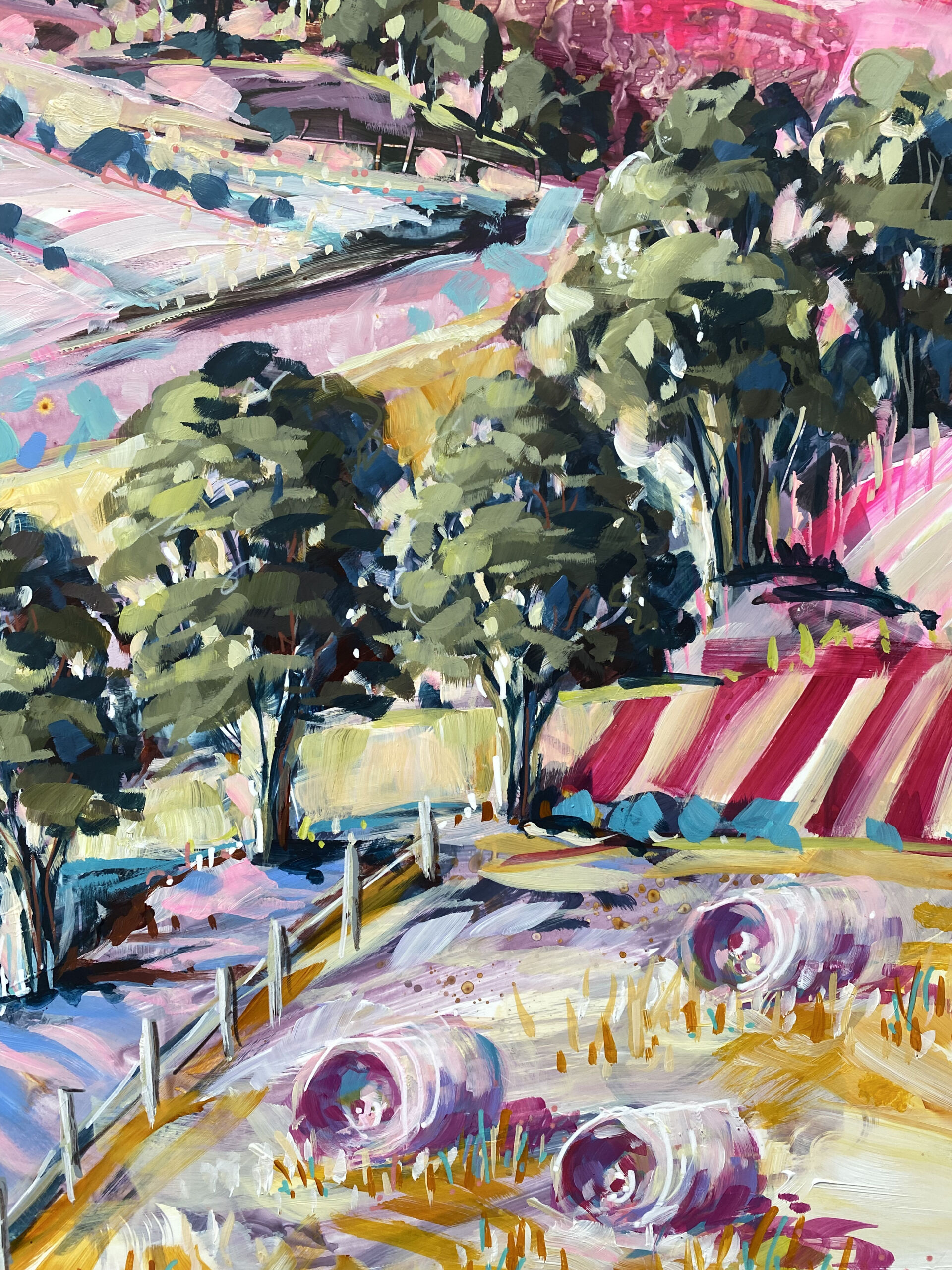 Inspired by the bountiful aspects of rural life and scenic hills and wineries on the Mornington Peninsula, this series of works invite the viewer to appreciate the vibrant palette of nature’s abundance and celebrates the ever changing beauty of Red Hill’s vistas and inspiring views.