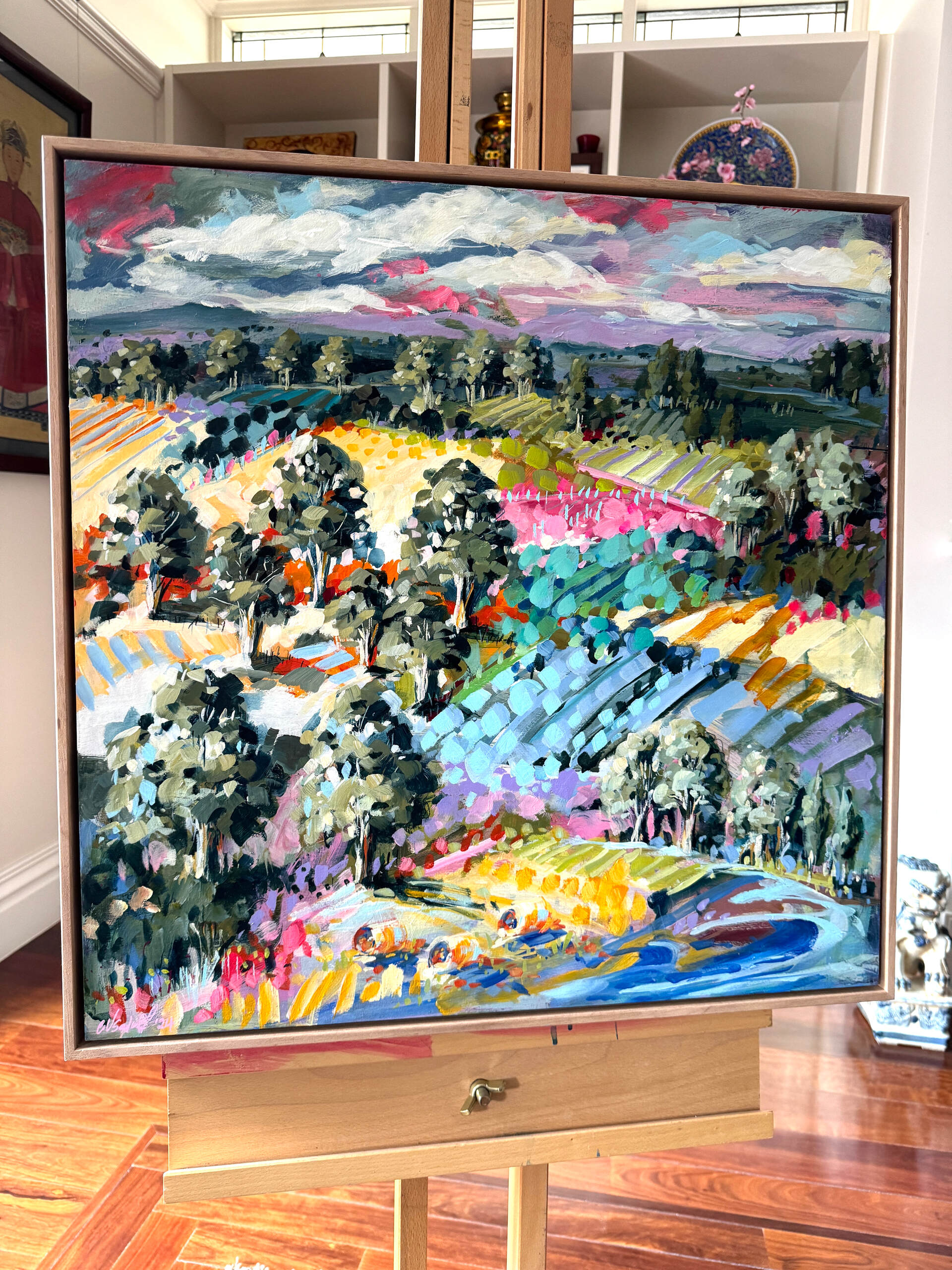 Red Hill Hues Acrylic on board by artist Cathy Usatoff