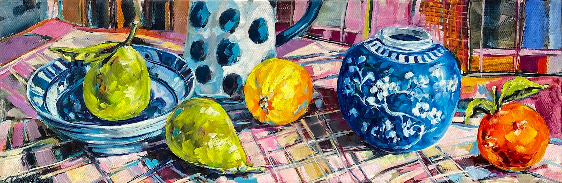 Still Life with Ginger Jar on cotton canvas painting by artist Cathy Usatoff