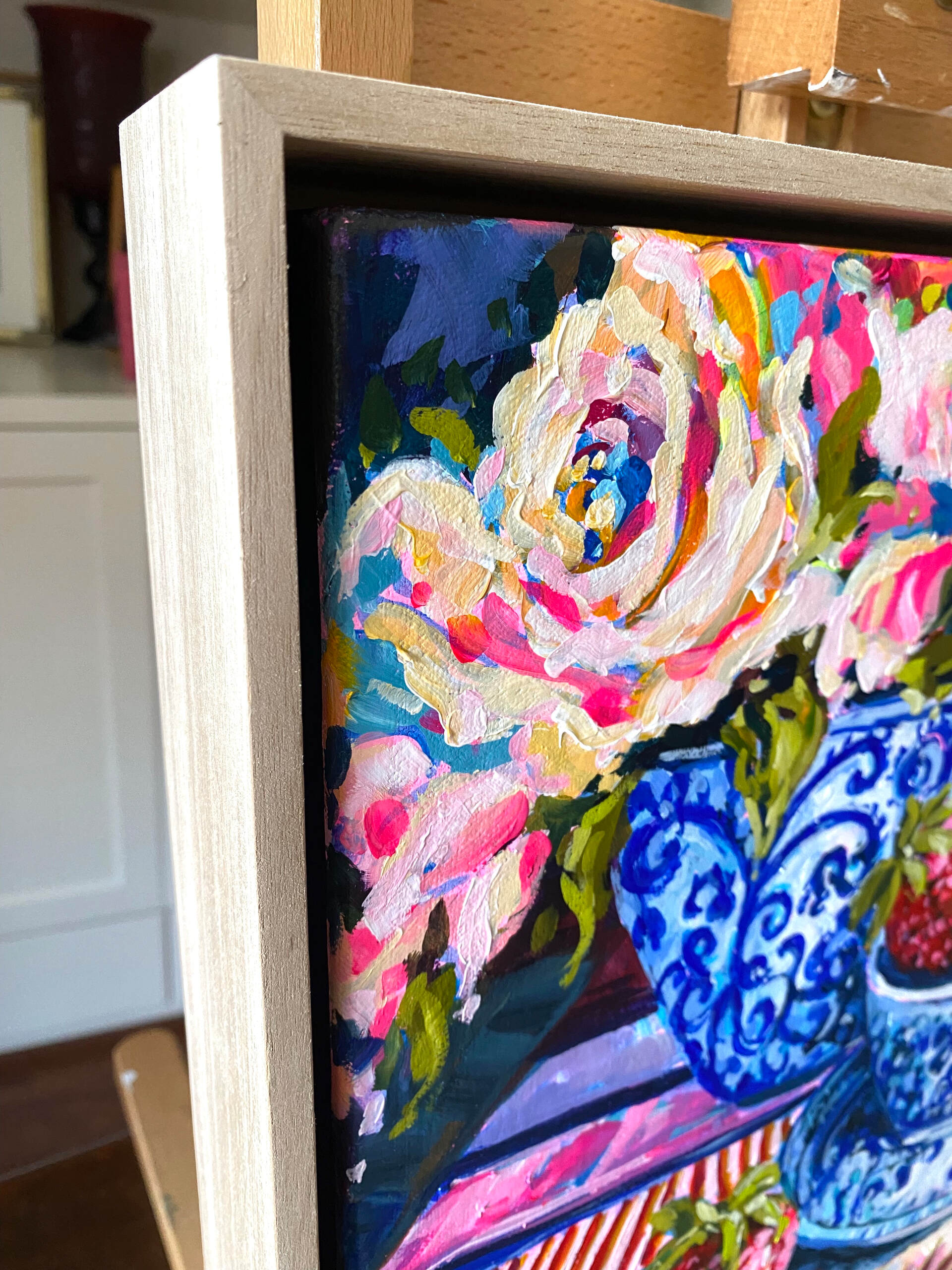 Strawberry Teacup - acrylic on cotton canvas painting by artist Cathy Usatoff