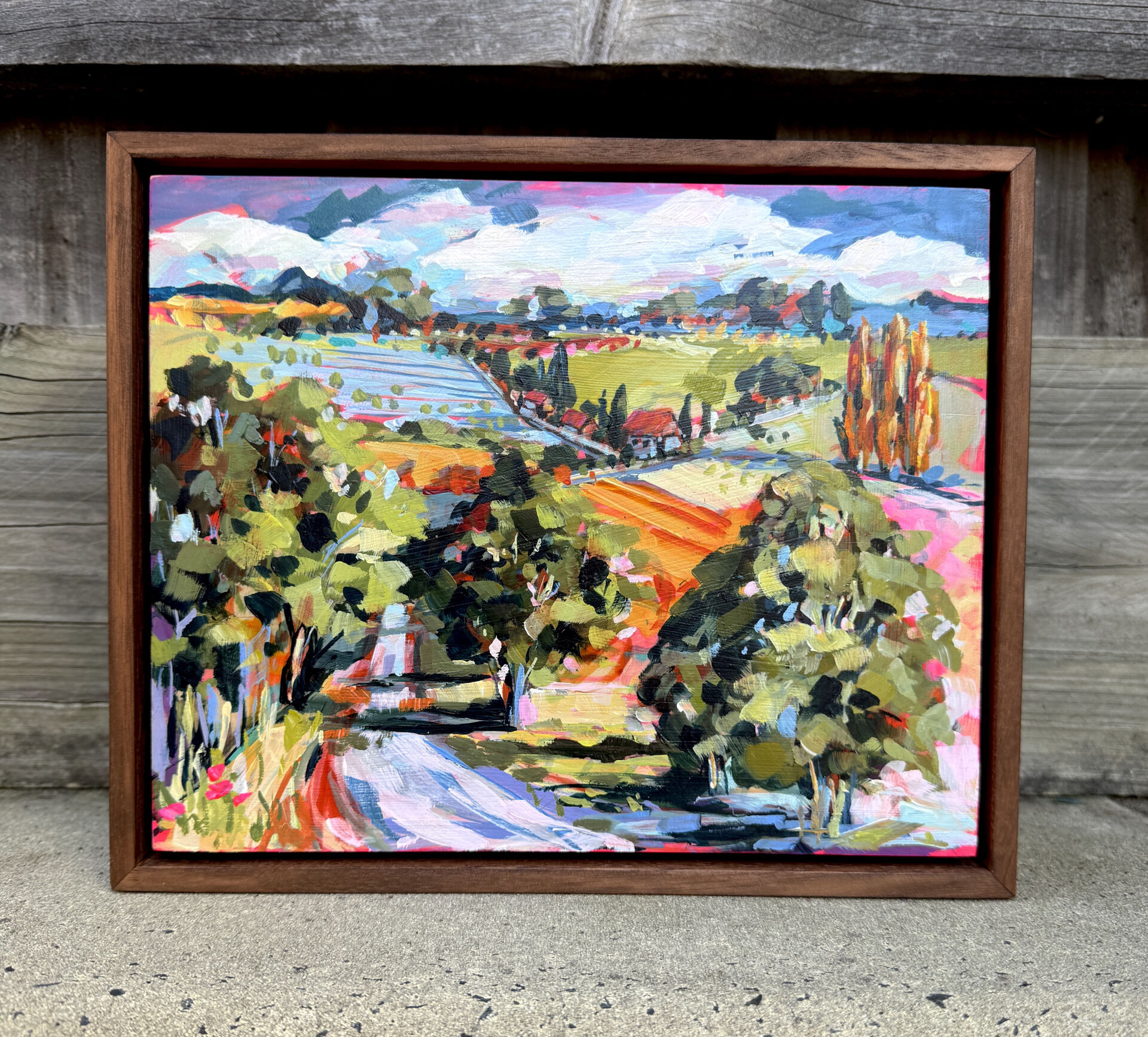Towards Winnaleah - acrylic on board painting by artist Cathy Usatoff