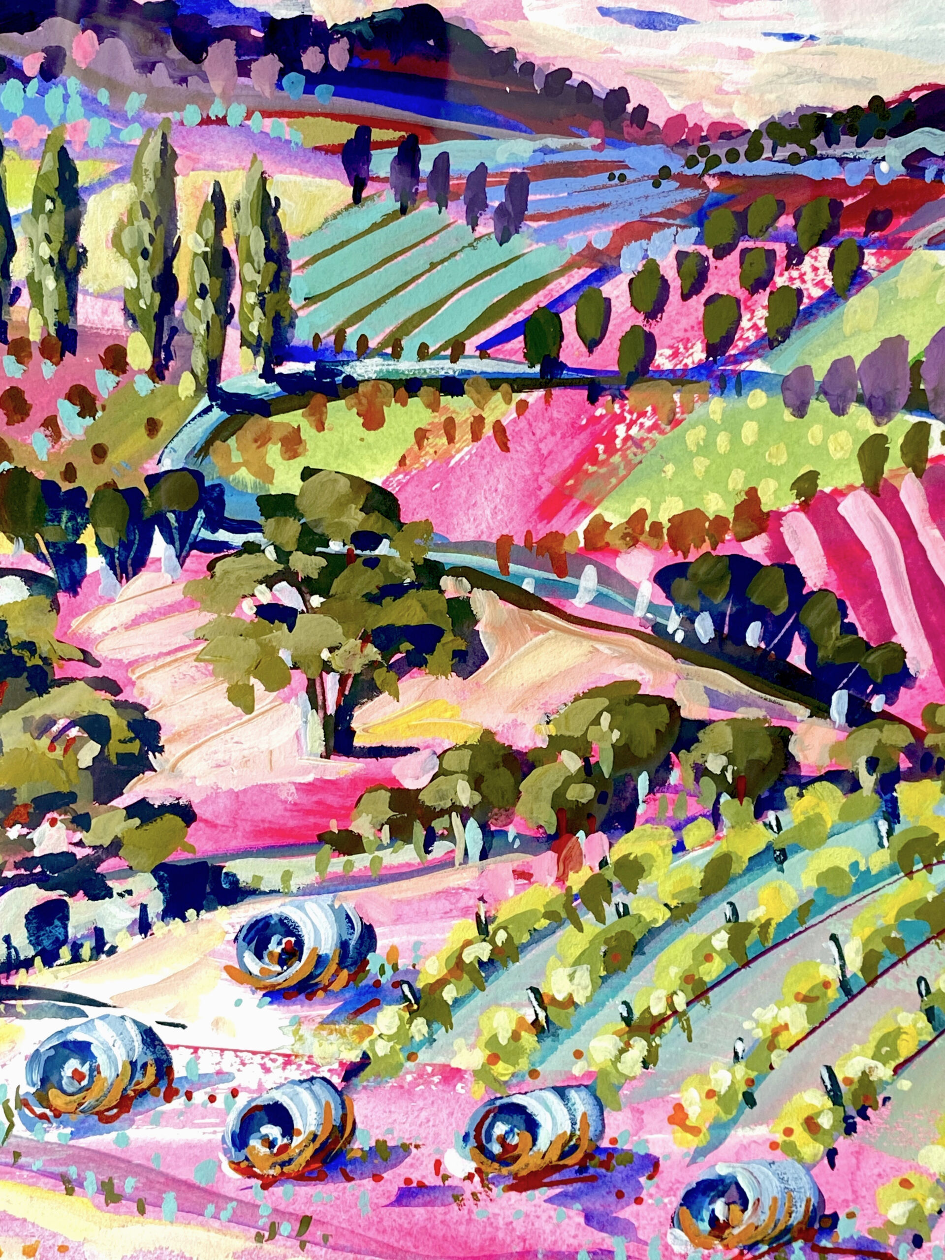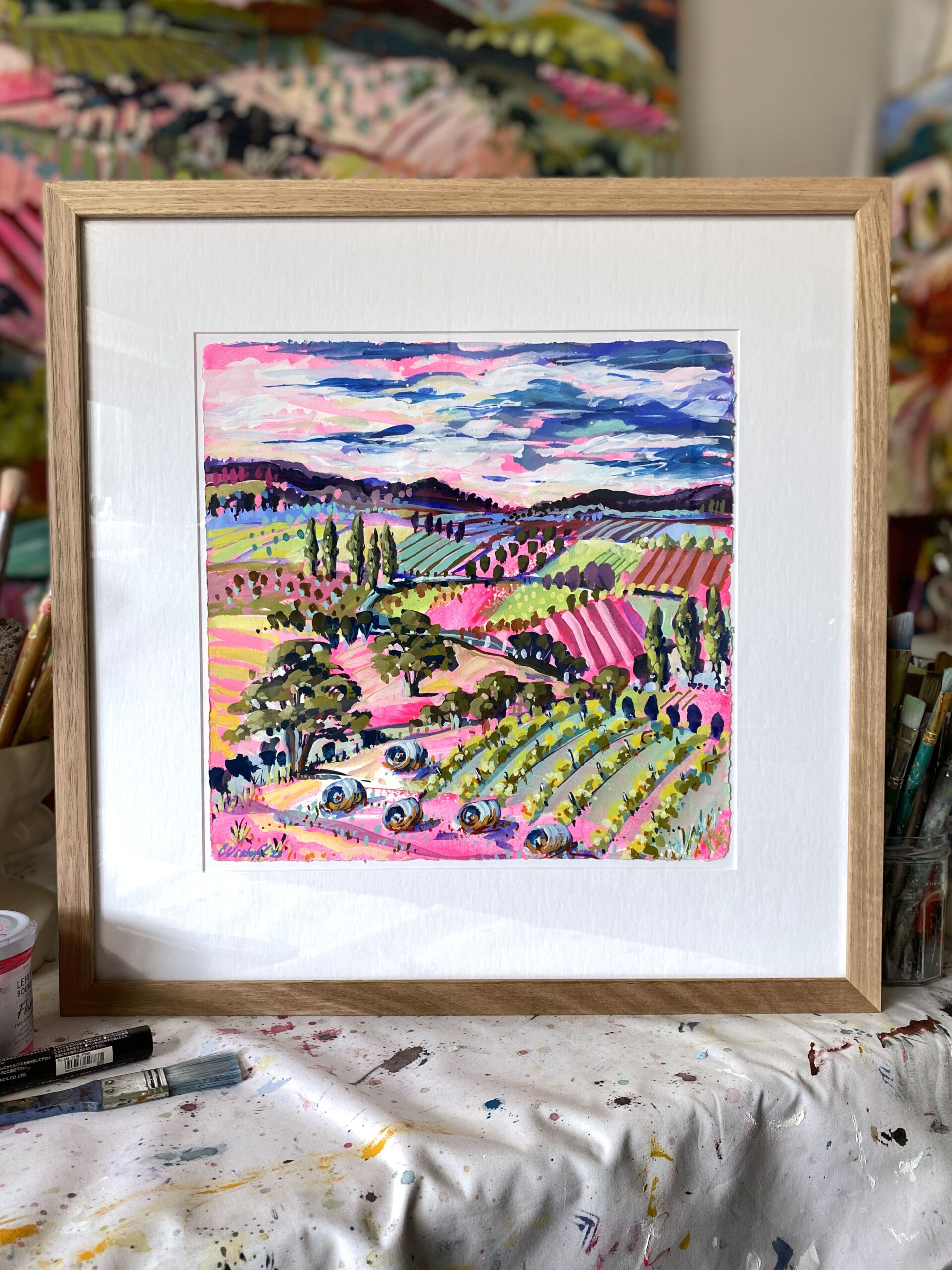 Chromatic intensity brings the landscape to life and infuses it with a sense of abundance and vitality. There is no restraint with colour choices in my gouache paintings. The bold and vibrant explosion of colours is my expression of the dynamic beauty of the Australian rural landscape.
