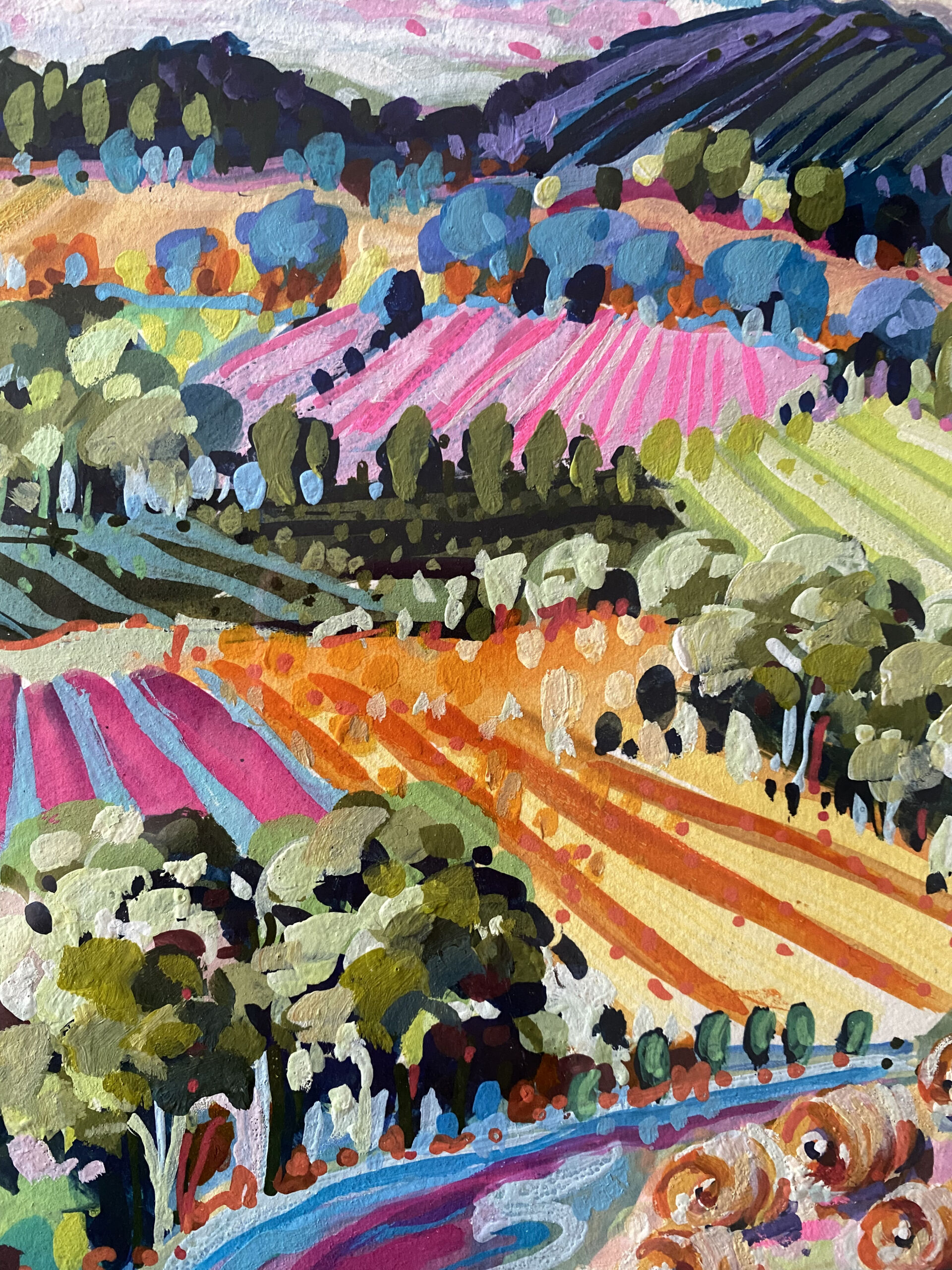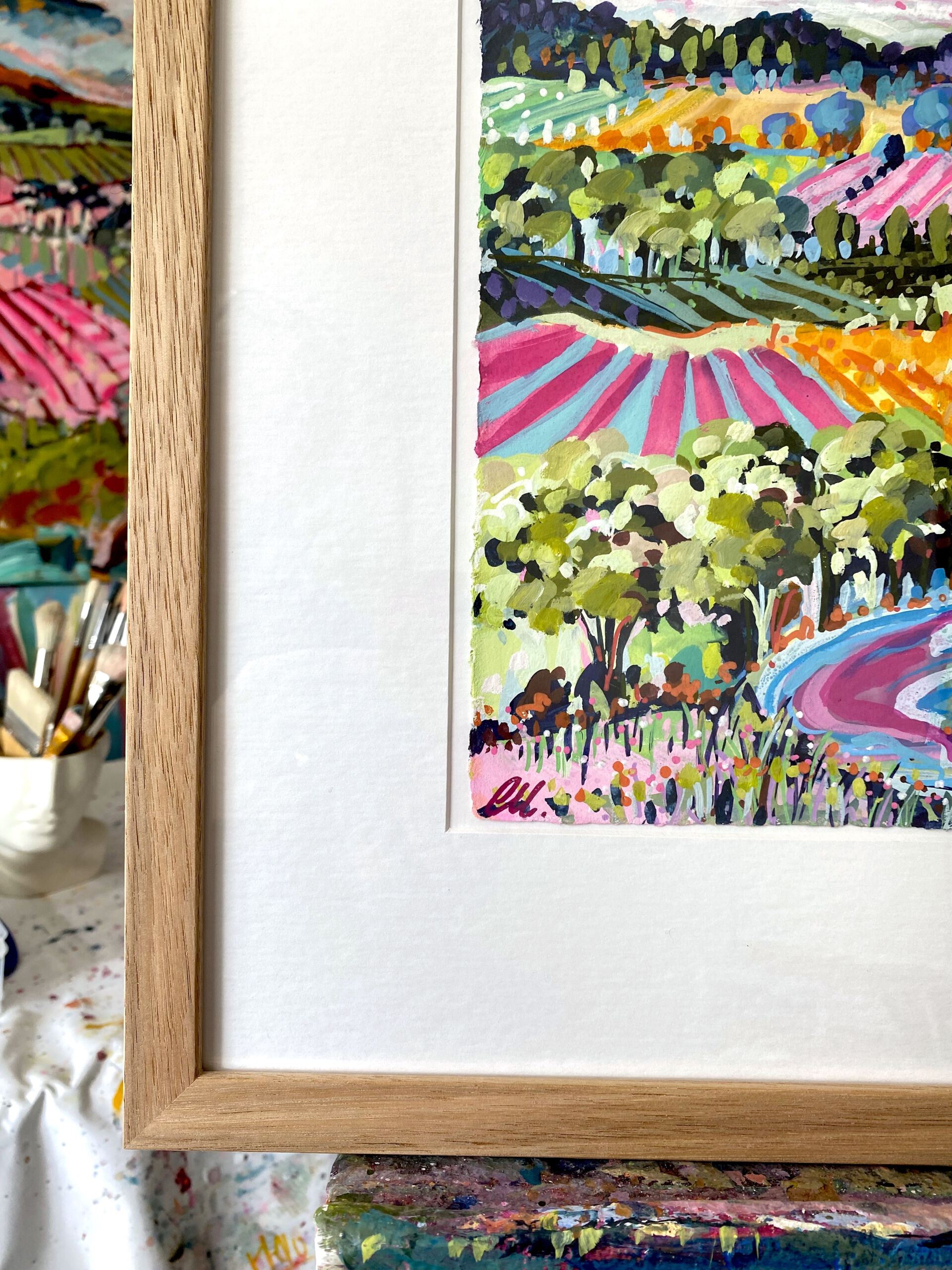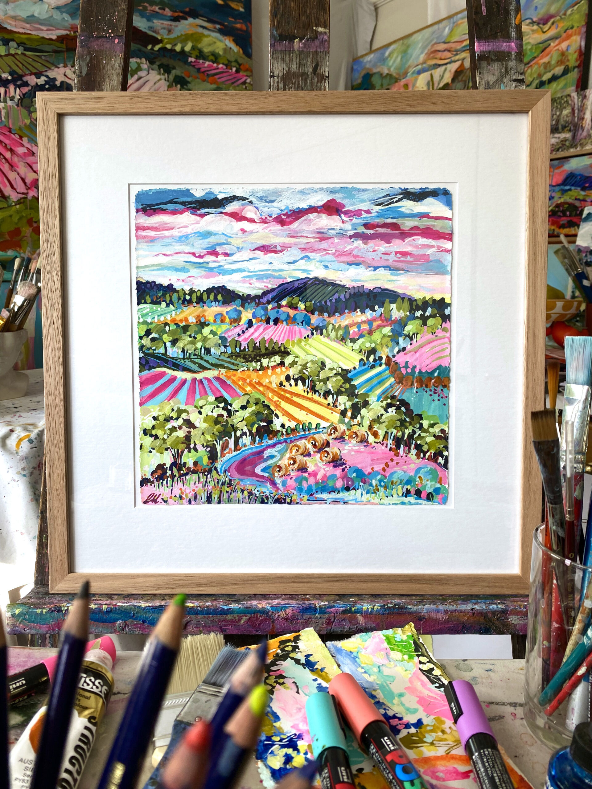 Chromatic intensity brings the landscape to life and infuses it with a sense of abundance and vitality. There is no restraint with colour choices in my gouache paintings. The bold and vibrant explosion of colours is my expression of the dynamic beauty of the Australian rural landscape.