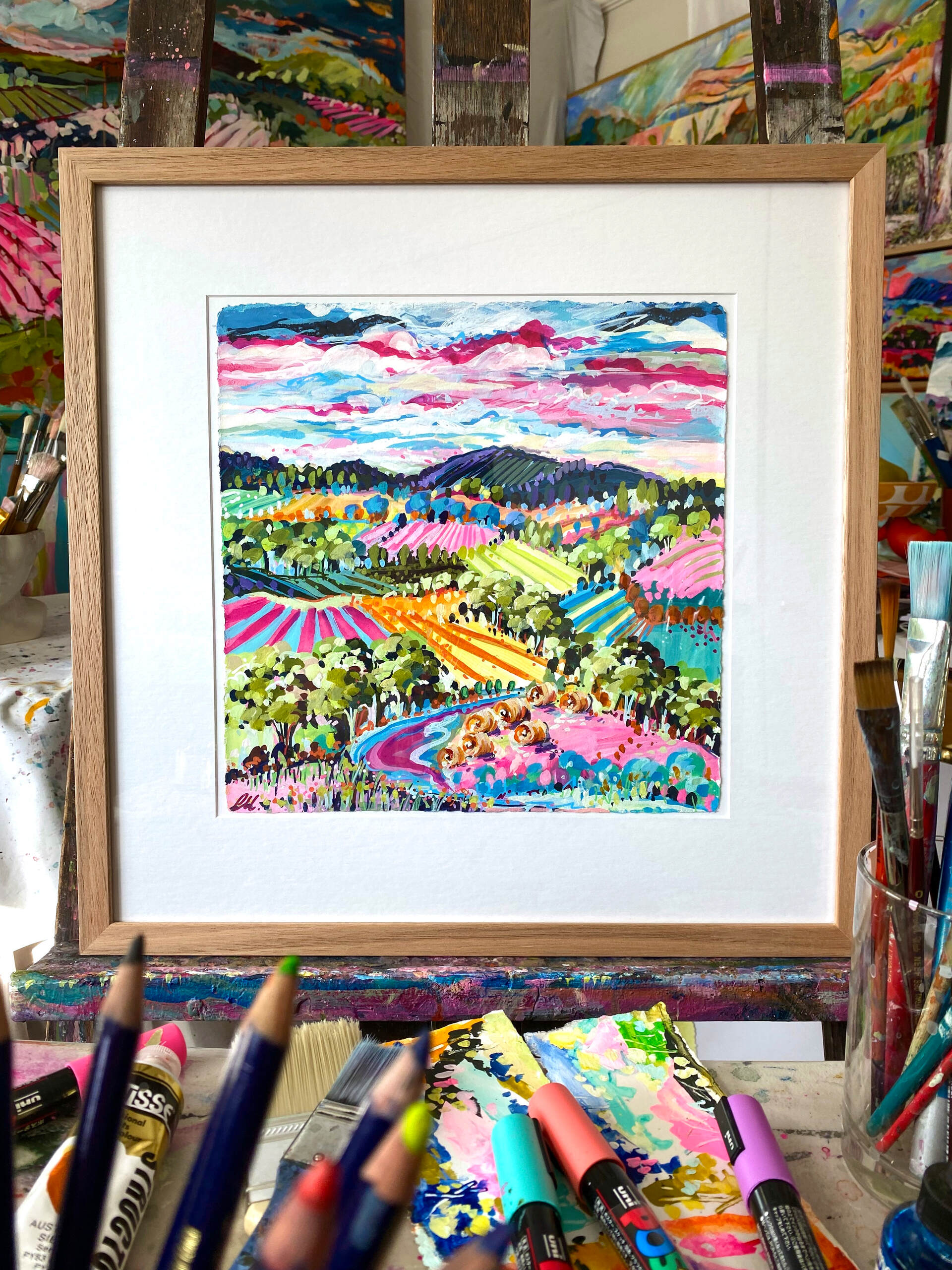 Chromatic intensity brings the landscape to life and infuses it with a sense of abundance and vitality. There is no restraint with colour choices in my gouache paintings. The bold and vibrant explosion of colours is my expression of the dynamic beauty of the Australian rural landscape.