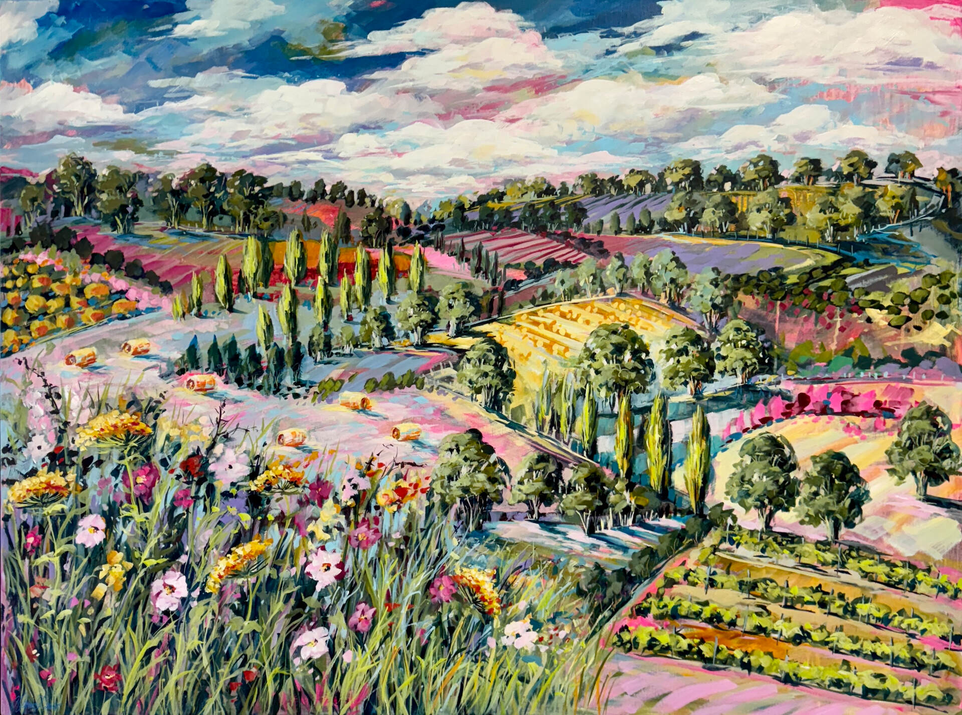 Vista Beyond the Wildflowers - acrylic on linen canvas painting by Cathy Usatoff