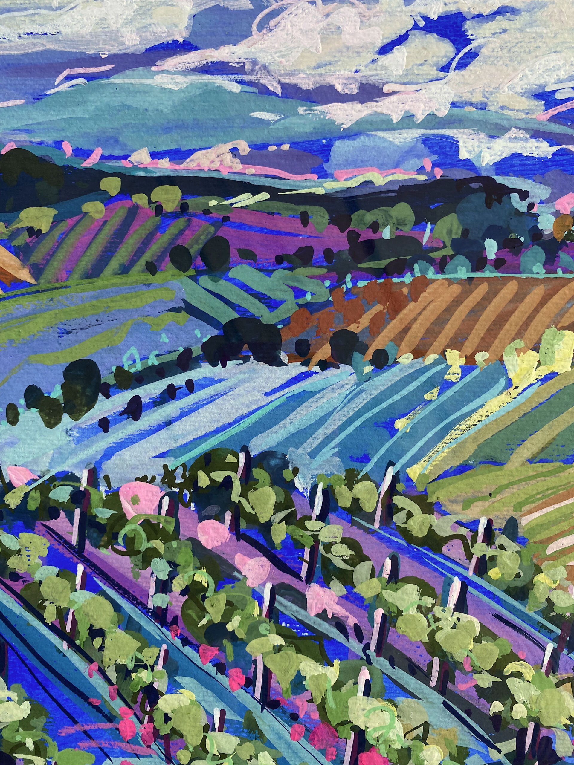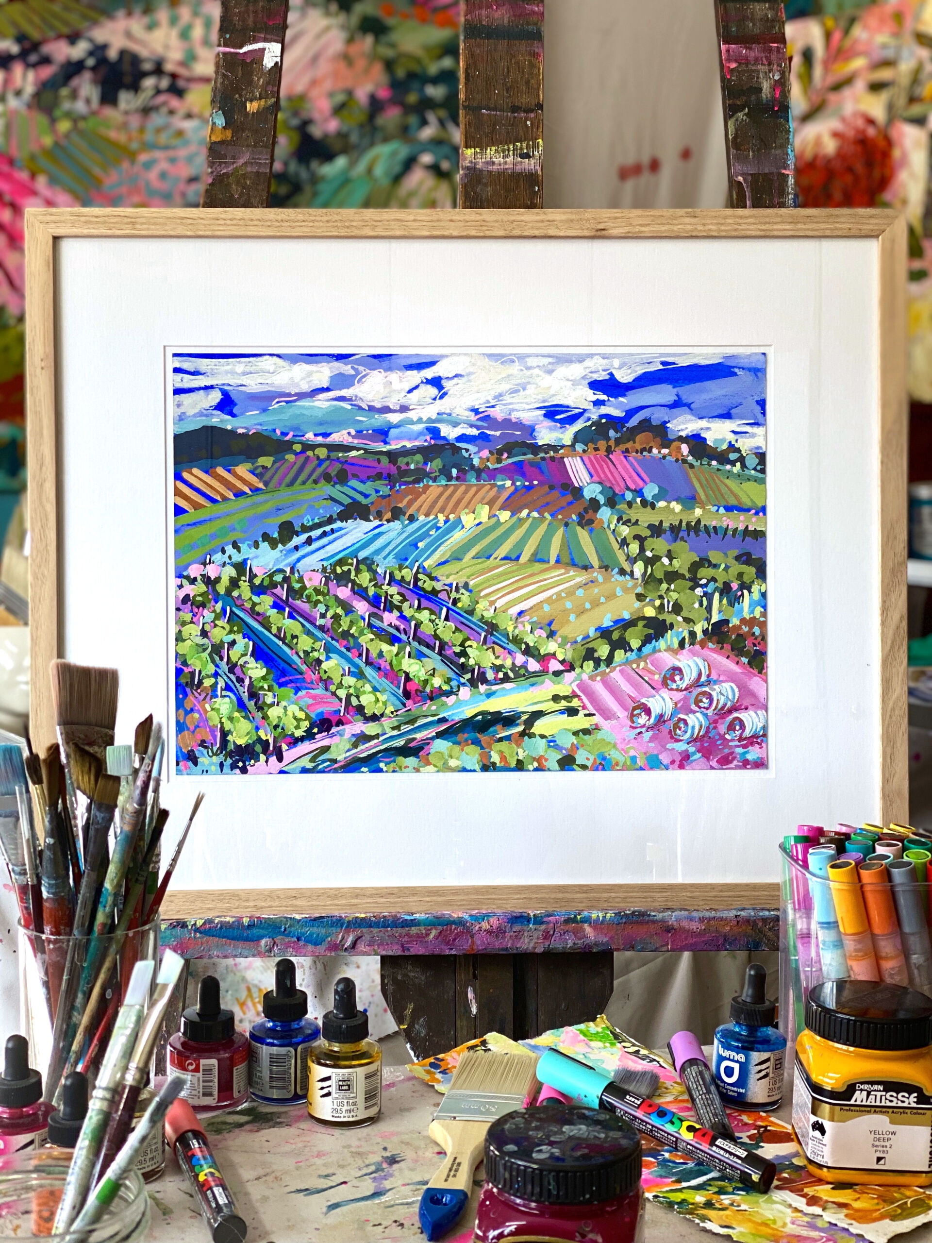 Chromatic intensity brings the landscape to life and infuses it with a sense of abundance and vitality. There is no restraint with colour choices in my gouache paintings. The bold and vibrant explosion of colours is my expression of the dynamic beauty of the Australian rural landscape.