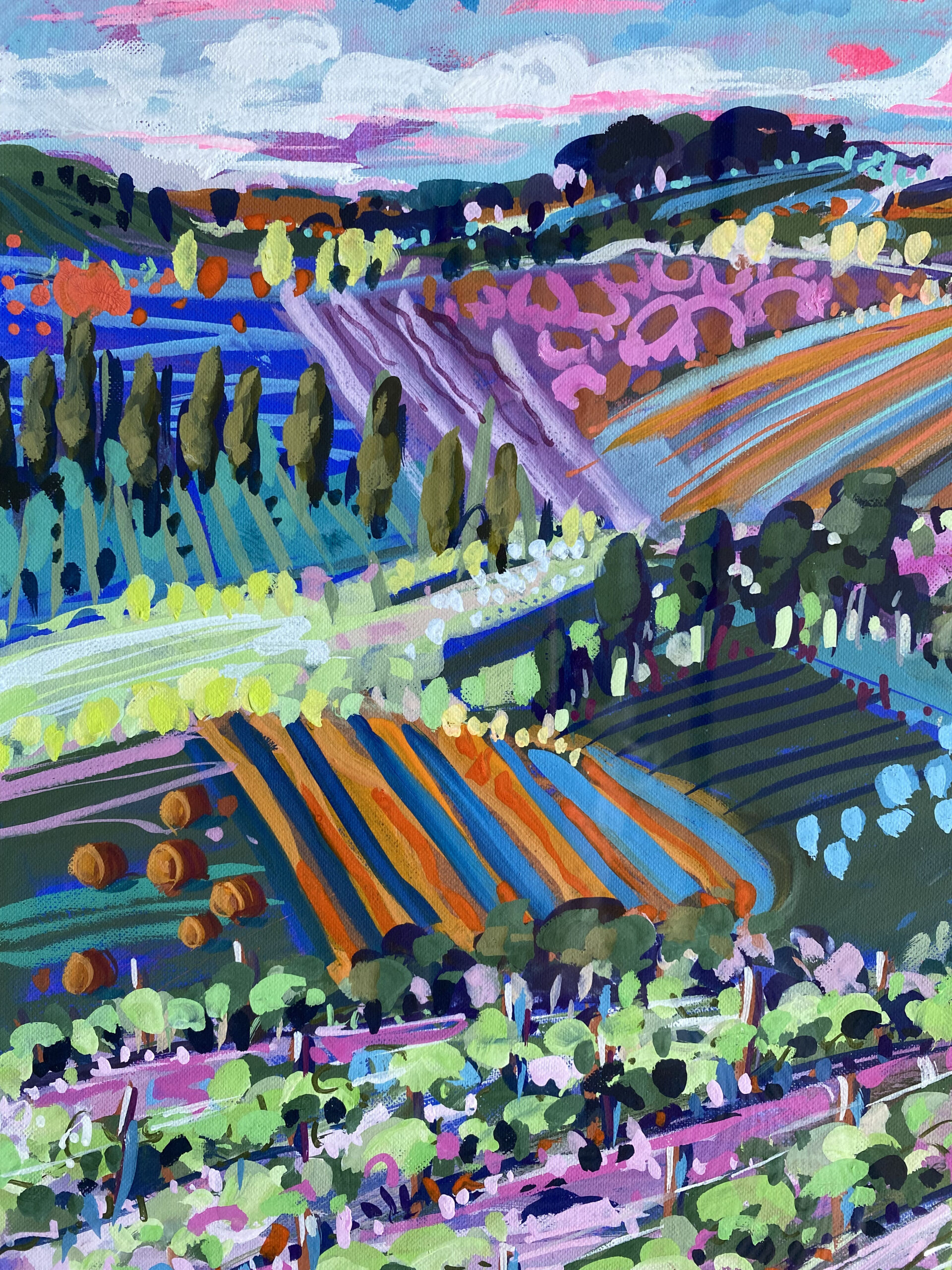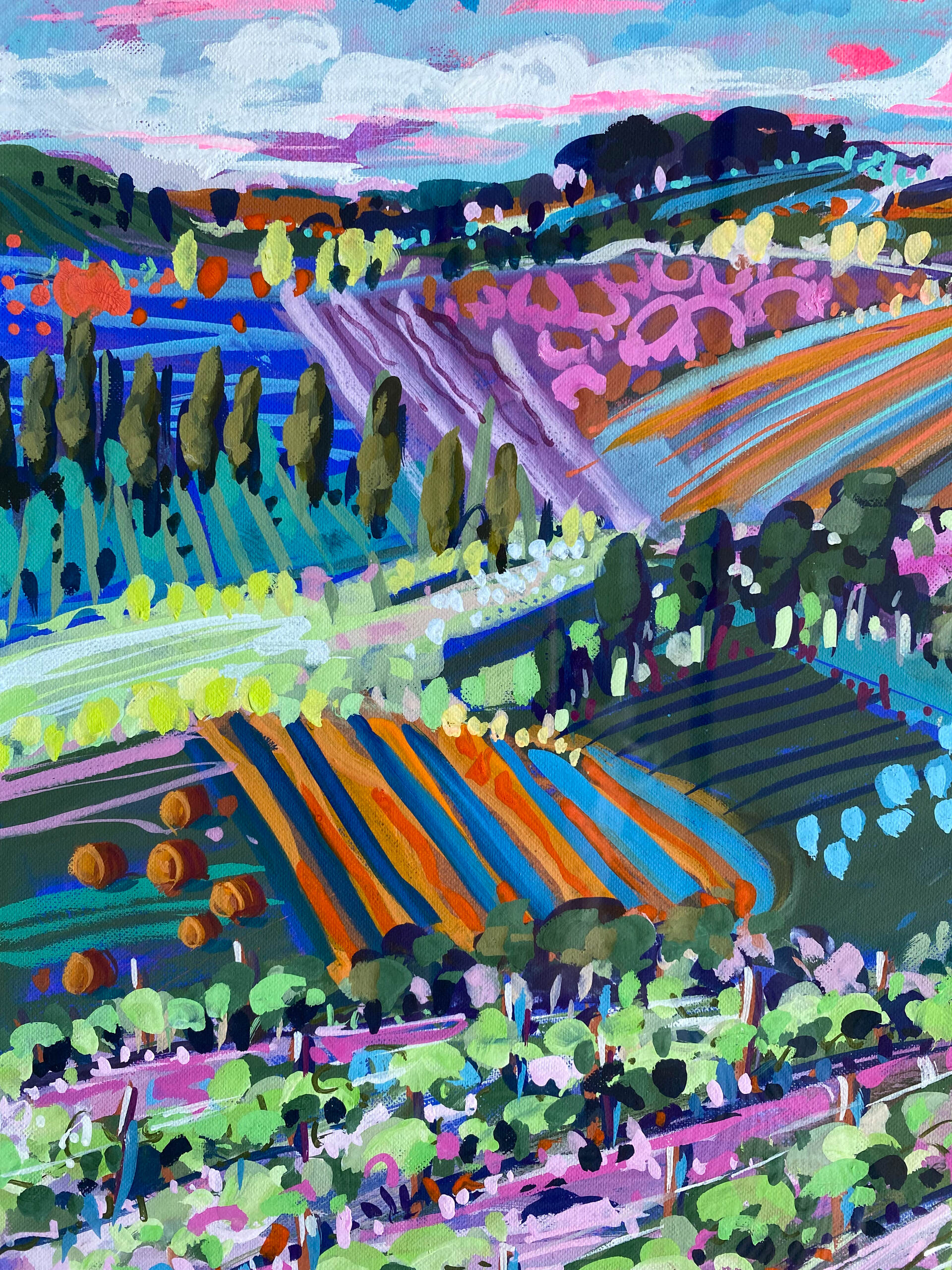 Chromatic intensity brings the landscape to life and infuses it with a sense of abundance and vitality. There is no restraint with colour choices in my gouache paintings. The bold and vibrant explosion of colours is my expression of the dynamic beauty of the Australian rural landscape.