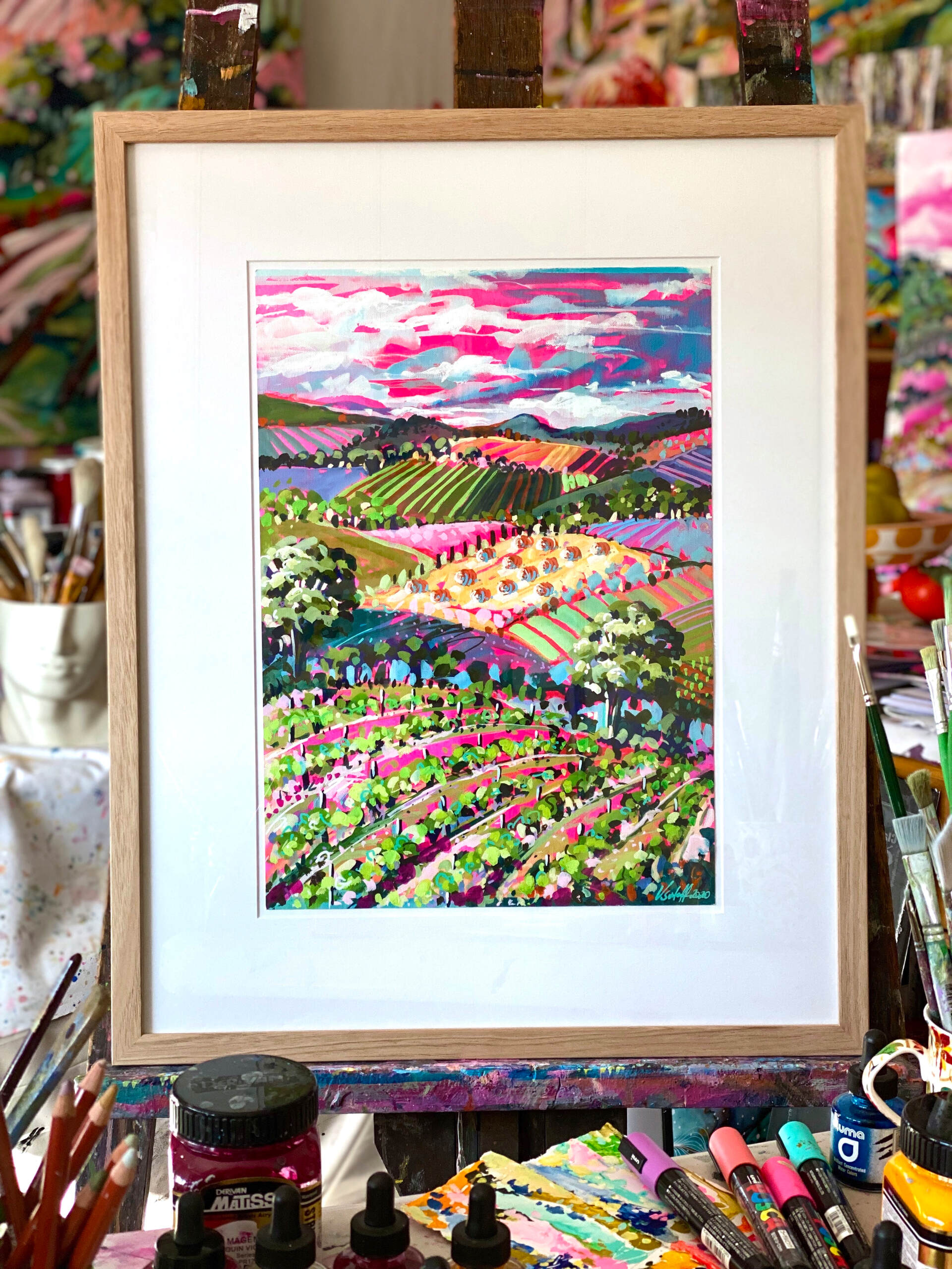 Chromatic intensity brings the landscape to life and infuses it with a sense of abundance and vitality. There is no restraint with colour choices in my gouache paintings. The bold and vibrant explosion of colours is my expression of the dynamic beauty of the Australian rural landscape.