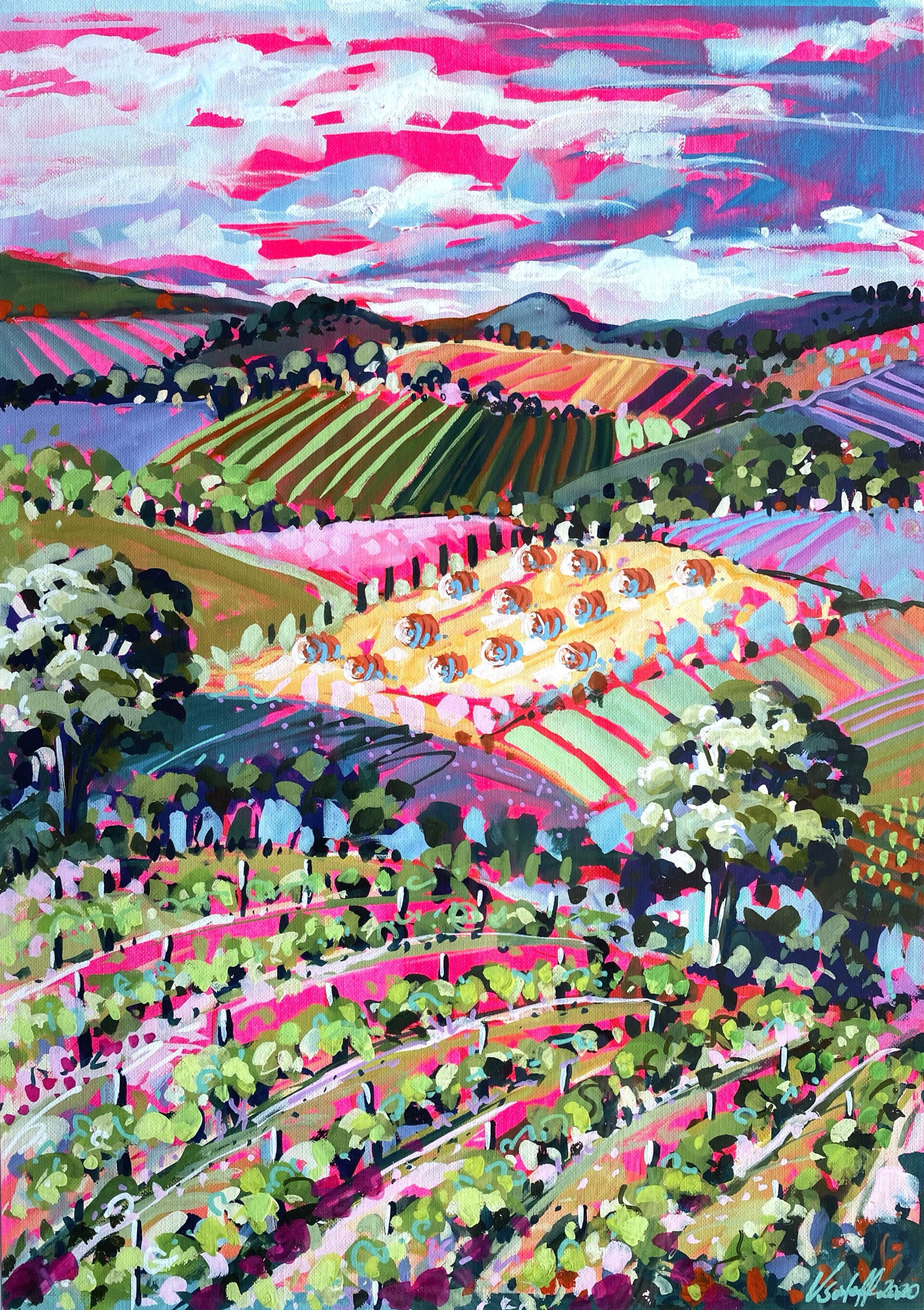Vivid Vineyards V2 - Gouache on 240gsm canvas paper by artist Cathy Usatoff