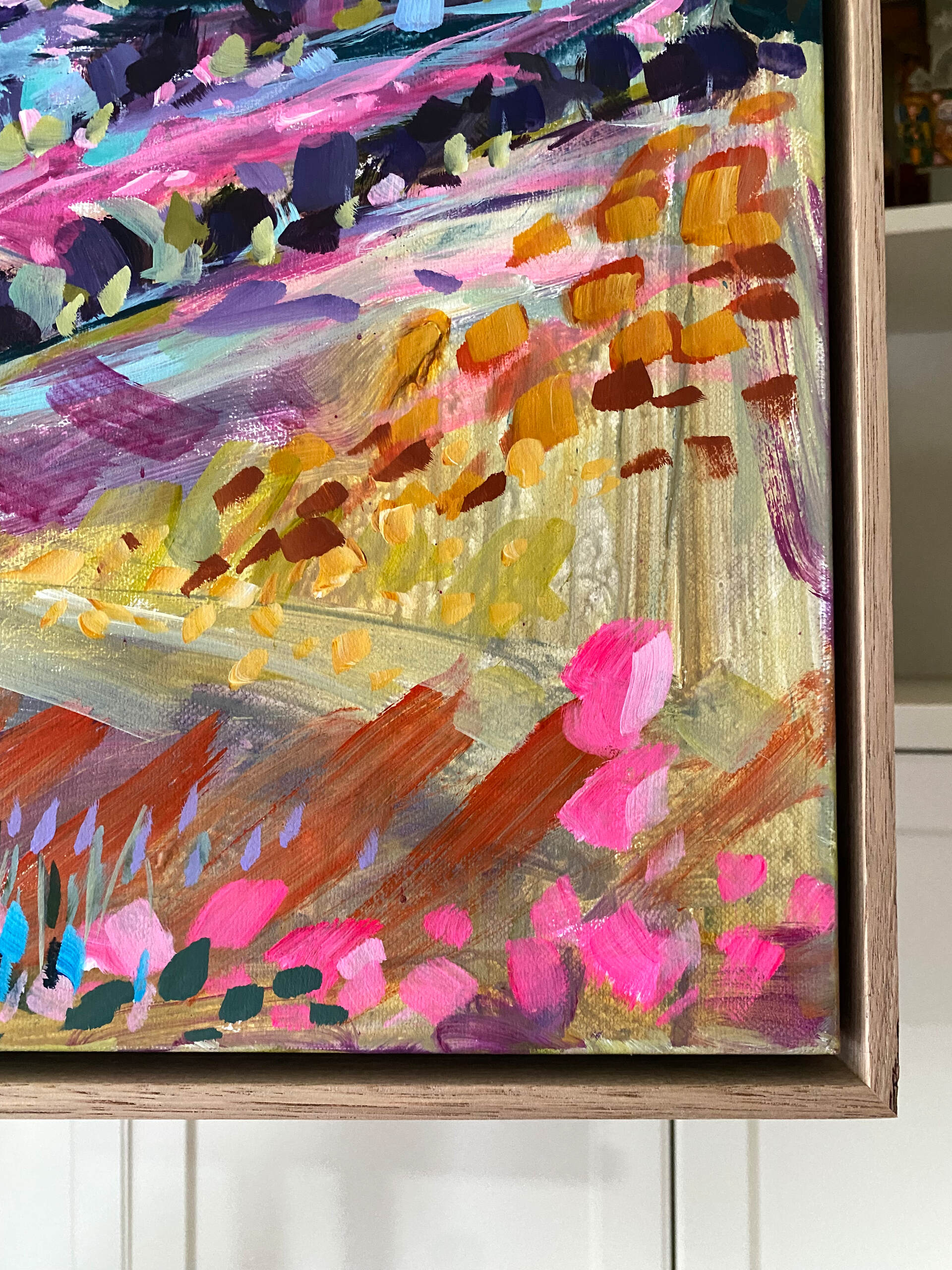 Inspired by the bountiful aspects of rural life and scenic hills and wineries on the Mornington Peninsula, this work transports viewers to a picturesque view in the heart of Red Hill wine country embracing the charm and appreciation of a bountiful countryside vista.